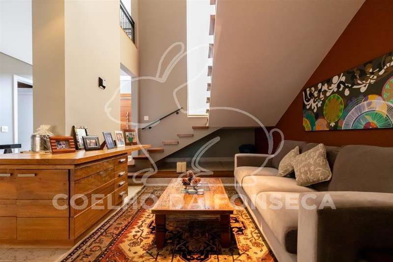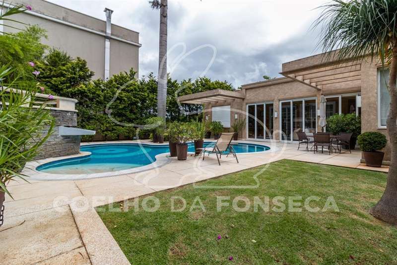 Casa à venda no Tamboré III, Alphaville. Construção de 715,58 m², 4 suítes - a principal com varanda e amplo closet. Inclui escritório, home theater, salas integradas, sala de bar e adega climatizada Joshua. Lazer: piscina com cascata, academia e espaço gourmet.