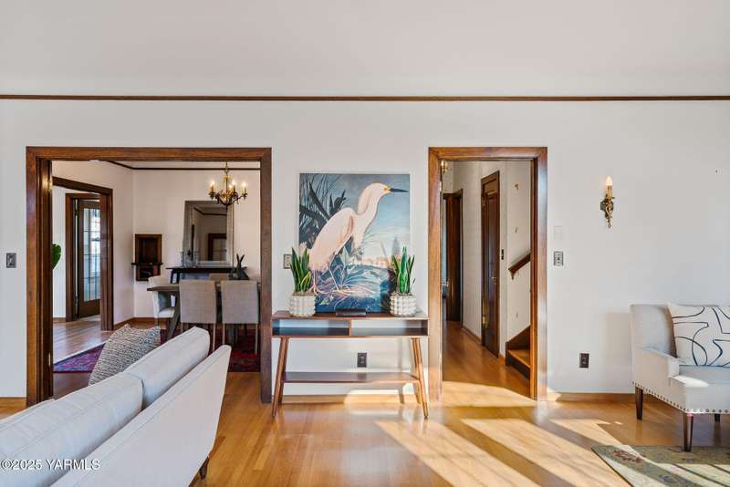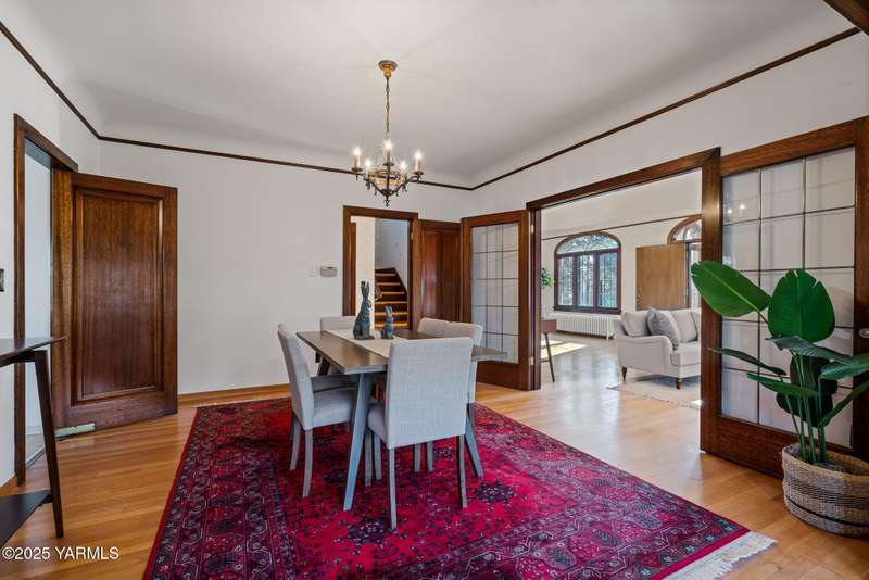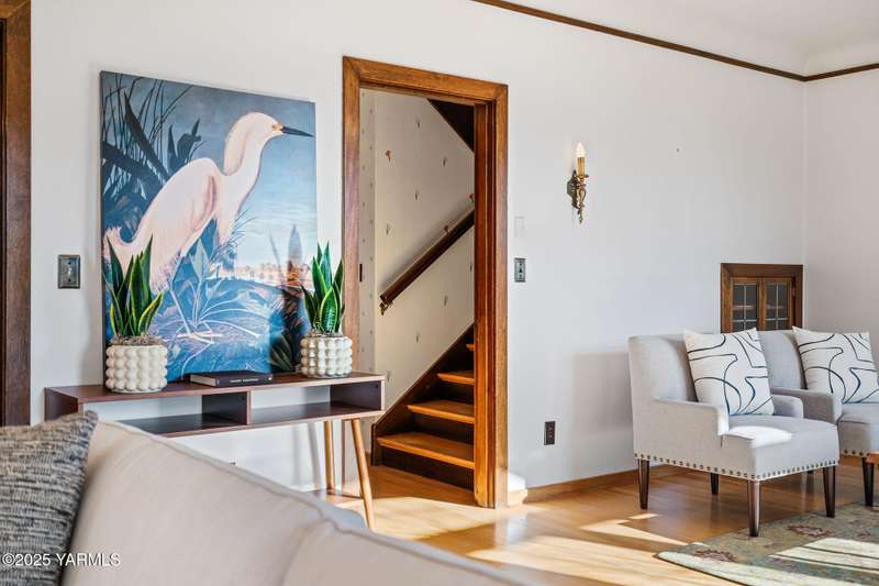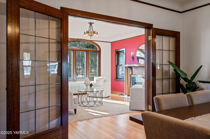 Welcome to a piece of Yakima's rich history! This stunning 100-year-old home in the Yakima Historic District has been meticulously maintained, showcasing the perfect blend of timeless charm and modern comfort. As you step through the grand front entrance, you'll be captivated by the large front room adorned with original lead glass windows and beautifully preserved hardwood flooring.The original light fixtures throughout the home add to its historic allure, while the spacious formal dining room, separated by lead glass doors, sets the stage for memorable dinner parties with family and friends. A cozy reading nook on the west side of the house beckons you to unwind with a good book amidst the serene ambiance. The sunlit kitchen offers ample storage and workspace, making it an inviting hub for culinary creativity. The main floor features a comfortable bedroom and a full bathroom that retains much of its original tile work and character, perfect for guests or family.Ascend the wide, elegant staircase to discover three large bedrooms, including a primary suite with a charming walk-out patio that boasts breathtaking views--ideal for sipping your morning coffee while soaking in the sunshine.The lower level is a versatile rec room and game area, complete with tall ceilings and finished spaces that offer endless possibilities for entertainment and relaxation. Set on a large corner lot with mature landscaping, including majestic 100-year-old trees, the expansive yard is perfect for outdoor gatherings, while the stunning stone gazebo adds a unique touch to the property. This is truly one of Yakima's grandest historic homes, a rare treasure waiting for the next owner to appreciate its beauty and charm in a friendly, walkable neighborhood close to parks and vibrant community festivities. Don't miss your chance to make this enchanting home your own.