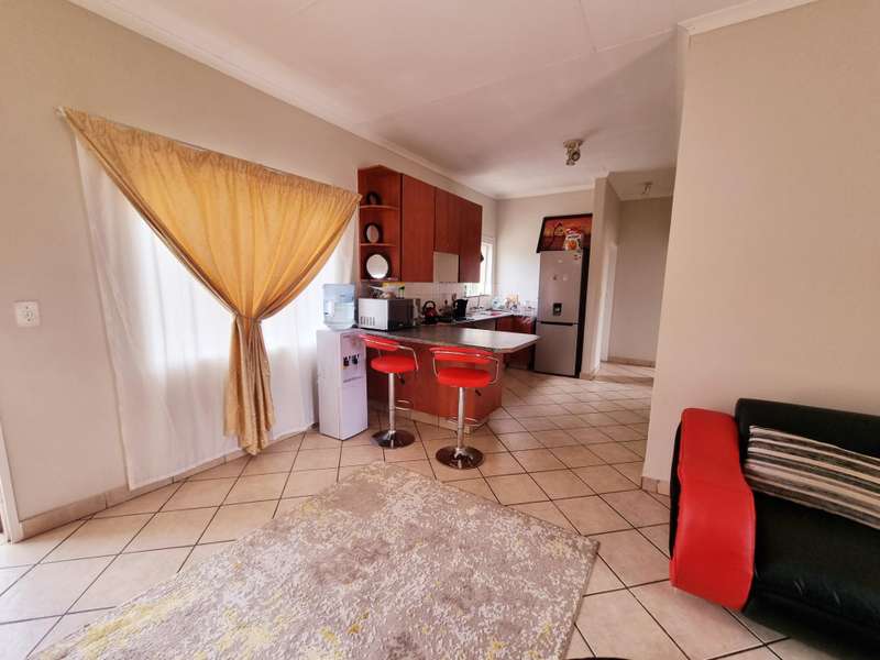 A 2-bedroom apartment is available for sale in a secure complex in Country View. The kitchen is fitted with built-in cupboards and offers plenty of storage space. There are two generously sized bedrooms fitted with built-in cupboards. The bathroom is well-sized with a shower and a bathtub. The lounge is spacious and leads to the balcony which has a built-in braai area and is sizable enough to fit an outdoor lounge suite. The high-security complex is located on the Gautrain bus route with easy access to the N1 highway as well as required amenities