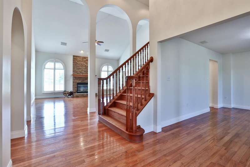 Gorgeous Custom-Built home in sought-after Brentwood Subdivision! This stunning property includes 3 finished levels of 3500+ square feet of living space. Features 4 bedrooms, 3.5 baths, and a 3-car garage. Spacious open-concept design, soaring ceilings, gleaming hardwood floors, and a desirable 1st-floor primary with deluxe ensuite and walk-in-closet. The gourmet kitchen includes a gas cooktop, double ovens, corian counters, tiled backsplash and custom wood cabinetry. Enjoy the Grand Great Room with stacked stone wood-burning fireplace, a private study with French doors, Pella casement windows, and plantation shutters. Additional highlights include built-in Nutone speaker system, two laundry rooms (main & lower levels), and a 9-ft foundation pour. The walkout lower level offers LVP flooring, a full kitchen, gas fireplace, fitness room, and 2 flex rooms that could easily be used as a 5th bedroom, playroom or hobby room. Perfect for an in-law suite. Relax on the covered front porch or retreat to the private patio with a peaceful water feature outback. Nestled on over a half-acre lot. 1-year Home Warranty Included. USDA financing eligible. Welcome Home!