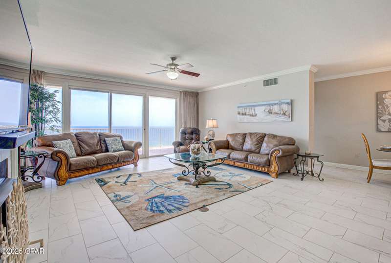 Welcome to your beach destination in this stunning 14th Floor Condo at Grande Surf Club. With only two units per floor, this charming condominium offers privacy with gated entry and coded elevator access. This furnished unit has beautiful marble flooring, new carpet and recently painted. Newer stainless steel appliances complement the kitchen. The water heater was replaced 2024, HVAC appx 4 years old, refrigerator 2024, and dishwasher, stove, microwave 2023. Along with this unit is also a dedicated parking space labeled 14-E. Don't miss out to own this piece of luxury. Schedule your private showing today and experience coast living at its finest! If measurements deemed important, please verify.