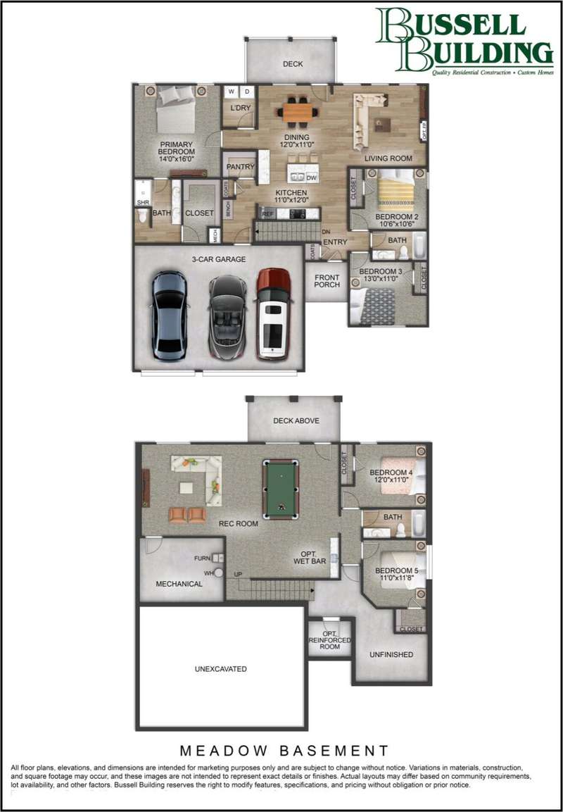 Welcome to the Meadow, a home designed with both elegance and functionality in mind. The open-concept floor plan offers a seamless flow from the sunlit living room to a gourmet kitchen, perfect for entertaining or everyday family life.Step out onto the covered deck, an ideal spot for morning coffee or evening relaxation. The fully finished basement adds even more living space, featuring a large rec room and additional bedrooms, perfect for guests or a home office.The private master suite is your personal retreat, complete with a spa-inspired bathroom and luxurious 3x5 tile shower. With a three-car garage and thoughtful design throughout, the Meadow is more than just a home - it's where your best memories are made.*Photos may be of a similar home*