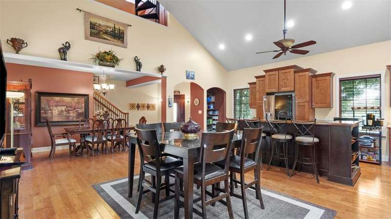Gorgeous home with unique floor plan - not cookie cutter! MIL Suite with private entrance on first floor, very open with plenty of closet space. Saltwater pool and outdoor hot tub included with beautiful landscaping, and fenced in yard. Large open kitchen and dining area, wonderful for entertaining. Four bedrooms upstairs, including master with ensuite bath and expansive closet. 2000 Sq Ft finished basement with lots of storage closets and full bath. Includes humidor room, wet bar, pool table room and workout room. Three car garage with room for 5 cars in the driveway. MIL Suite was used as successful AIRBNB. Spiral staircase on second floor leads to private space for office, meditation or yoga. NO HOA! Driveway is HEATED! Do not miss the opportunity to see this wonderful home!