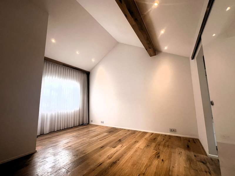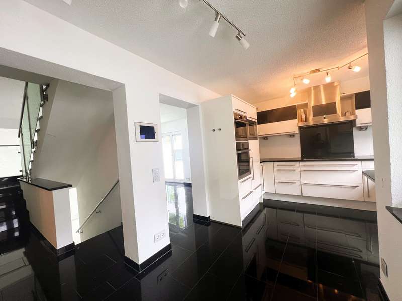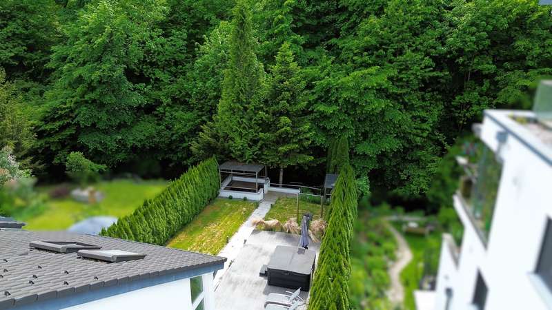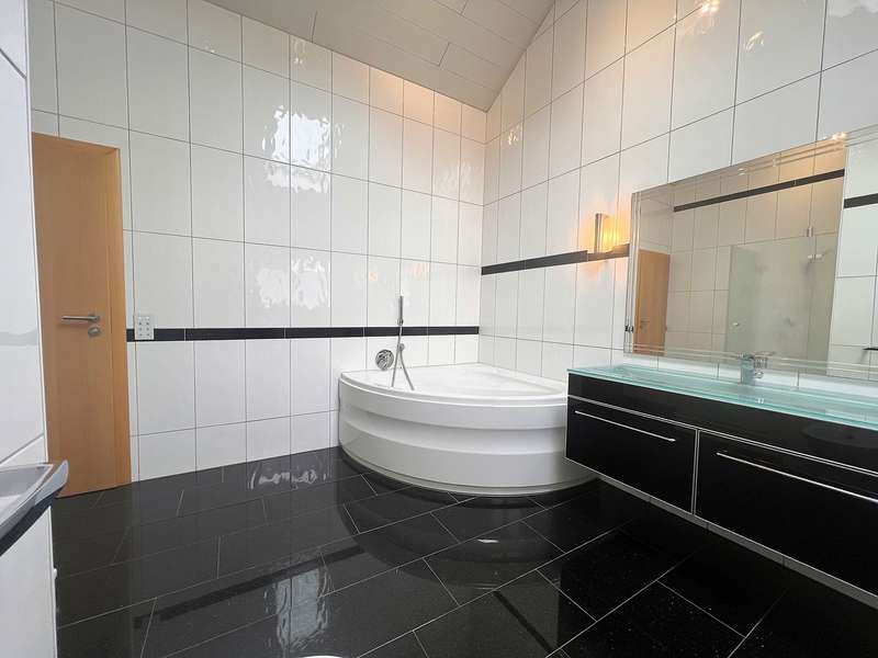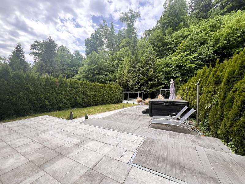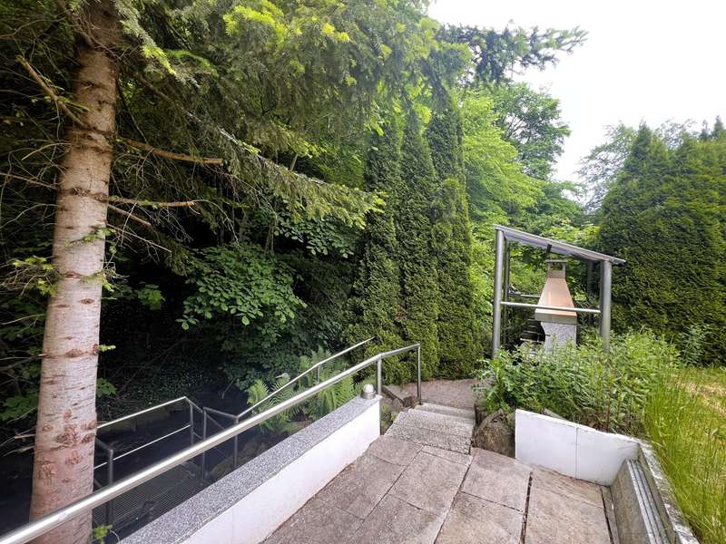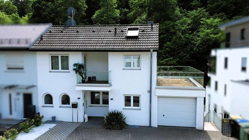 This high-quality semi-detached house with a living space of approx. 225 m² and a plot of approx. 468 m² offers you generous space and a well thought-out room layout on several levels. Built in 1980, the house is in as-new condition thanks to extensive modernization and renovation work since 2007. Thanks to its quiet yet central location, this property offers an excellent combination of comfort and functionality. The property has a total of nine rooms, providing ample space for families or other uses. The open-plan living and dining area has floor-to-ceiling windows that flood the rooms with light. Two modernized bathrooms with high-quality sanitary facilities such as a corner bathtub, a shower and a bidet offer additional living comfort. The master bedroom has an adjoining dressing room, which provides practical storage space. The furnishings of the house meet the highest standards: "Galaxy Star" granite floors from India, beech wood doors and frames, underfloor heating in the dining area and electric shutters complete the high-quality living experience. A modern kitchen with granite worktop and brand-name appliances. Two fireplaces provide cozy warmth on cool days. The house has been extensively modernized and brought up to the latest technical standards. Among other things, plastic windows (some with triple glazing), roof windows, a new entrance door and an attic conversion with insulation were installed in 2007. The floor plan was also optimized. Additional improvements were added later, such as the installation of a solar system for hot water (2010), an automatic heating control system (2015) and a water softening system (2013). The heating system was last replaced in 2014. The property offers numerous outdoor areas, including three balconies or terraces, a natural stone terrace with electric awning and a barbecue area with gazebo. The garden has been carefully landscaped and has direct access to the Scherzach, which opens up further potential uses. An integrated sauna in the basement and a whirlpool in the garden area complete the offer. The house also offers a garage and four outdoor parking spaces. A local alarm system provides security. Due to the layout, it is also possible to separate a granny apartment. The property is ideal for prospective buyers looking for a high-quality, modern semi-detached house in a central yet quiet location. Arrange a viewing appointment now to get to know the property in person and discover the many possibilities.