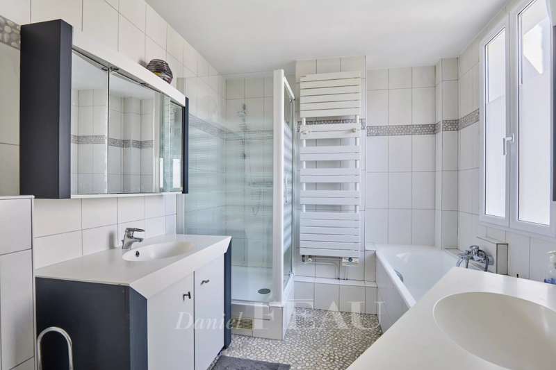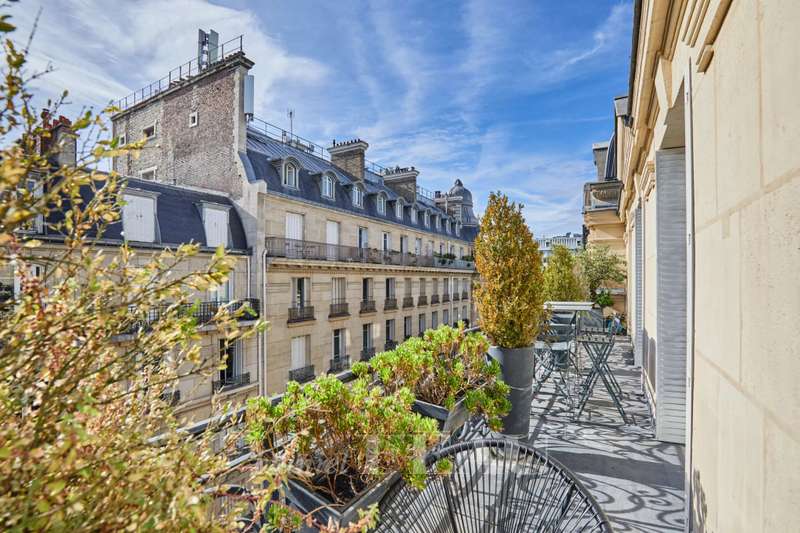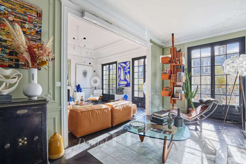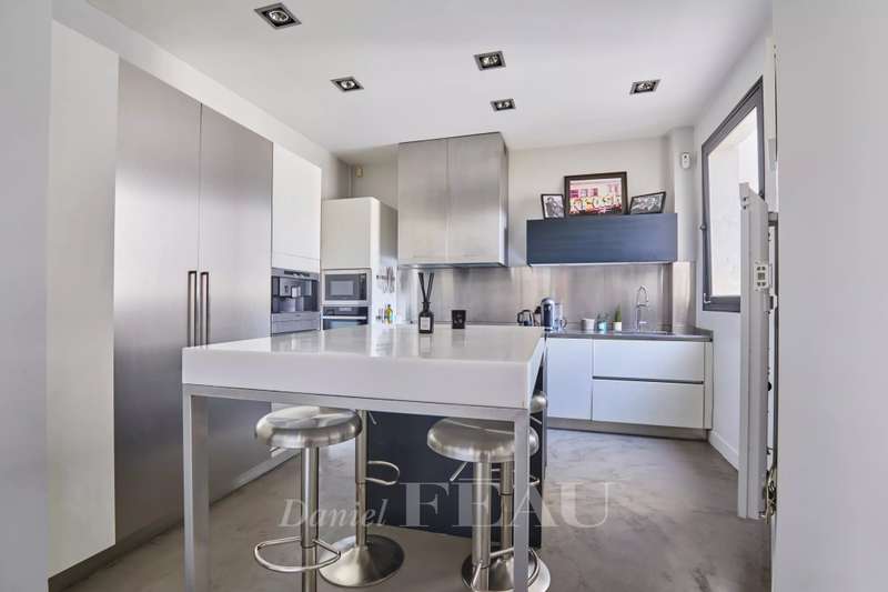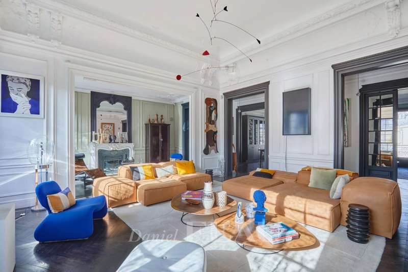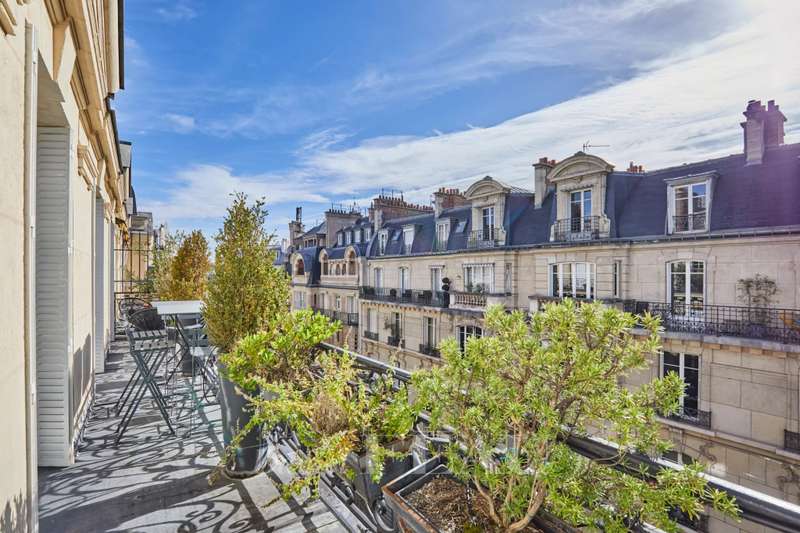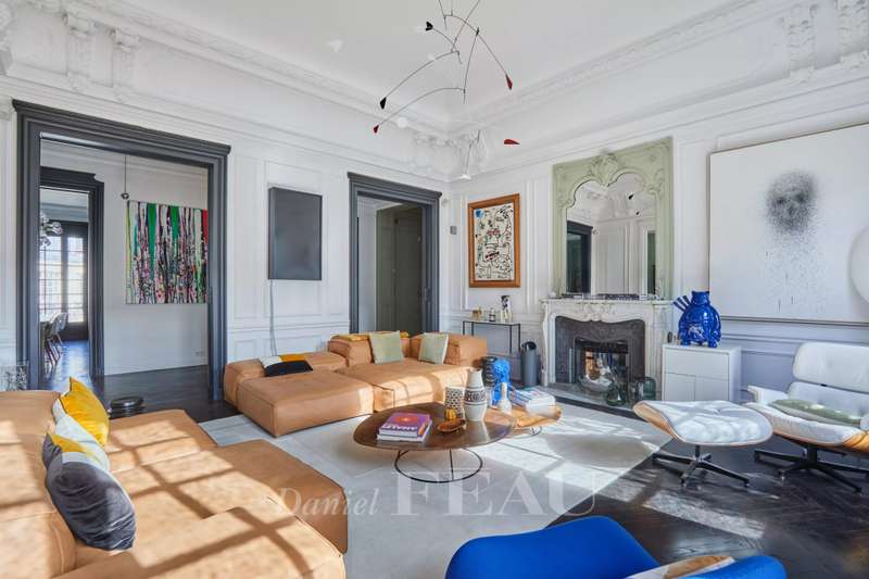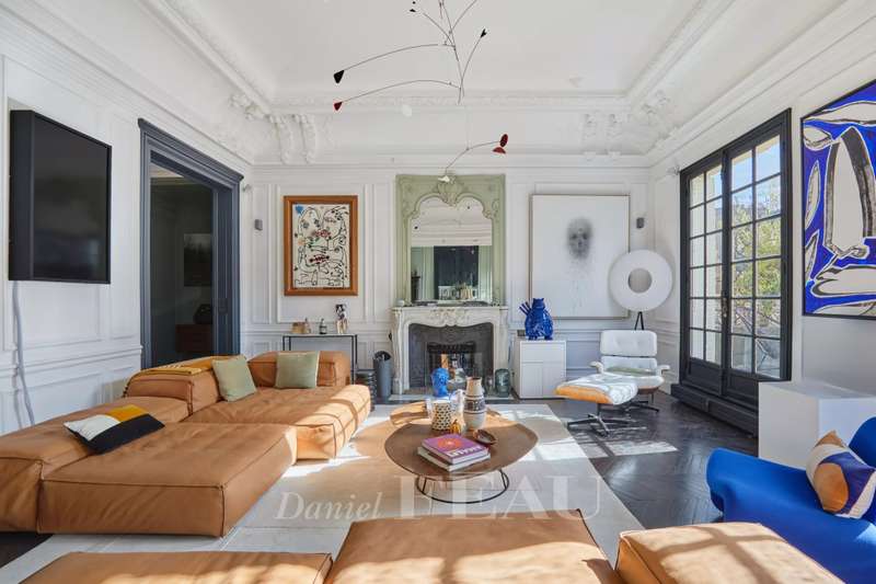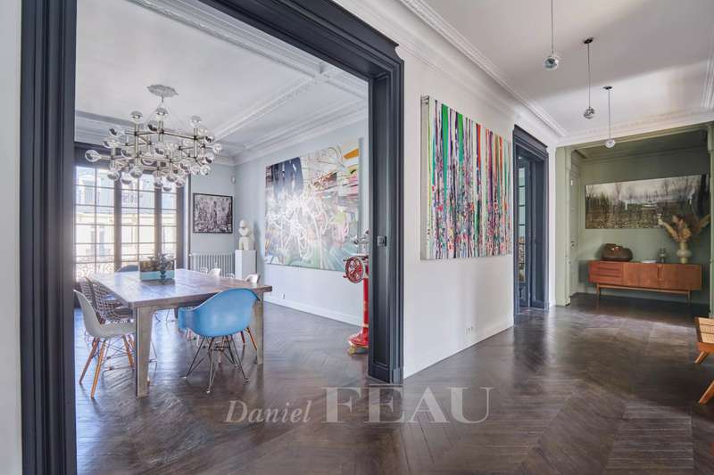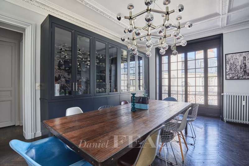 Saint Ferdinand neighbourhood, in the immediate vicinity of the Arc de Triomphe, the shops, the schools and the transport networks. This peaceful dual-aspect apartment on the top floors (5th and 6th) of a very well-maintained early 20th century building with a caretaker and a lift offers 265 sqm of floor space and 255.24 sqm of living space as defined by the Carrez Law. Benefiting from a leafy 16 sqm terrace, it includes an entrance hall, a double living/reception room, a drawing room, a dining room, a kitchen with dining facilities, a master suite with a dressing room, a shower room and wc, a bedroom, a bathroom with a wc, and a utility room. The upper floor comprises two bedrooms, a bathroom/wc, and a landing fitted as a fitness room. Ample fitted storage space. With a parking space and two cellars.