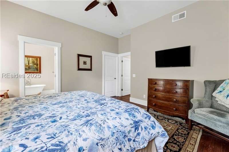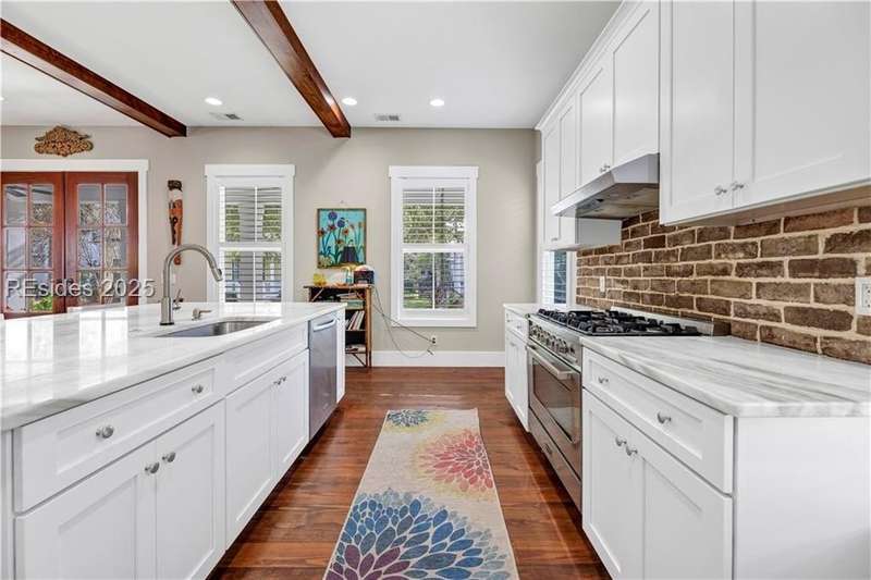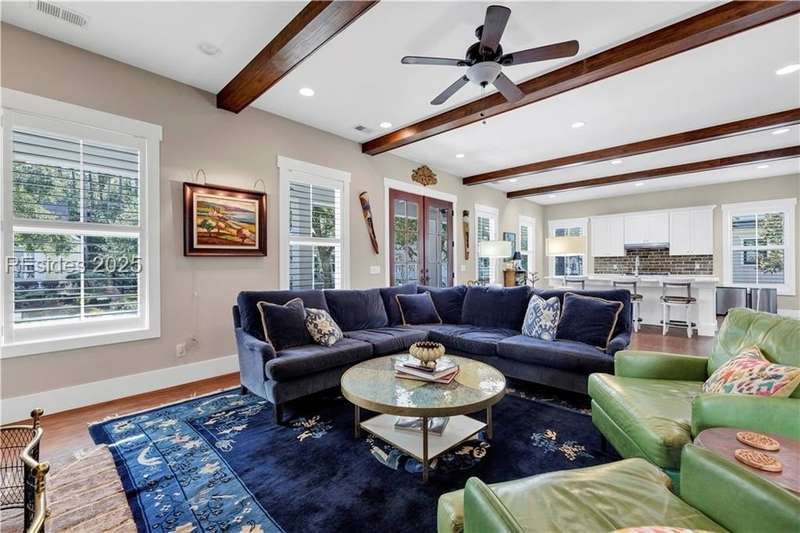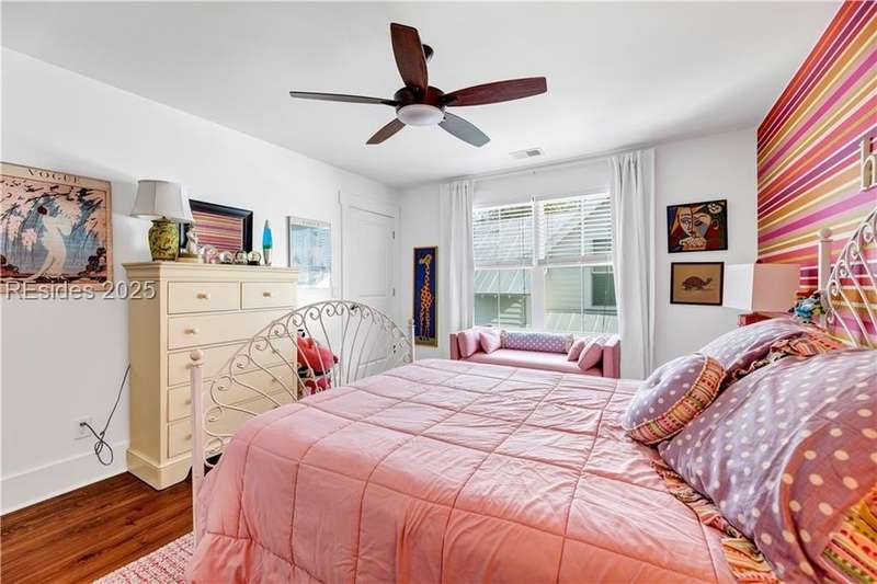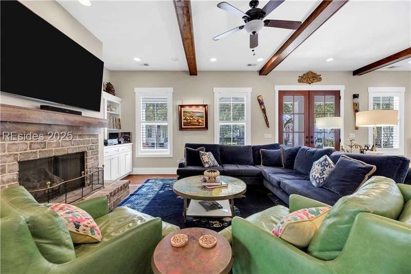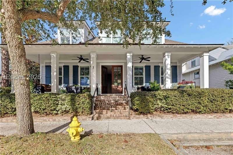 The perfect home in the Heart of Historic Old Town Bluffton! Just a short walk to shopping, dining, art galleries, coffee shops, entertainment, multiple Town Parks and the beautiful May River. A covered Front Porch w/ Savannah brick invites you in. Ultimate flexible floorplan w/ dual Primary Suites & Living Areas on both the First and Second Floors. The First Floor offers a wide-open living area with a spacious eat-in kitchen, large walk-in pantry, dining area and open living space with fireplace. Upstairs is another Primary Suite, additional bedrooms & massive living area. Covered back porch overlooks a private fenced backyard and firepit.