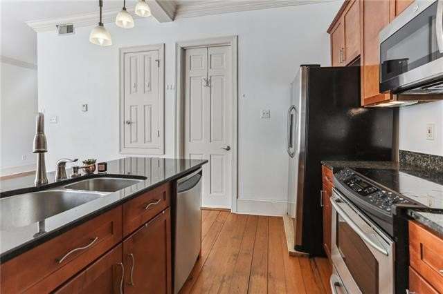 Chic & Spacious 1BR/1BA Condo in the Heart of Magazine Street Welcome to this beautifully updated 2nd-floor condo at the coveted corner of Magazine Street and Louisiana Avenue - where charm meets convenience in one of New Orleans’ most vibrant neighborhoods. This stunning 1BR/1BA gem features an open-concept layout with original hardwood floors, elegant triple crown molding, exposed brick walls, and soaring ceilings. The thoughtfully designed kitchen includes granite countertops, stainless steel appliances, and plenty of storage - perfect for cooking and entertaining. Retreat to a serene bedroom with a large walk-in closet and enjoy a spa-like bathroom adorned with Carrara marble and a striking herringbone tile shower. Additional perks include a private laundry room with washer/dryer and plenty of storage. The building offers gated off-street parking, an on-site fitness center, a charming courtyard, and recent updates including a new roof, improved exterior drainage, and an elevator. Enjoy unbeatable access to Magazine Street’s best dining, coffee shops, shopping, grocery stores, and the streetcar line - all just steps from your door.
