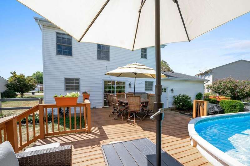 Charming three bedroom, two-story, two and half bath home nestled on a private, cul-de-sac lot with an oasis of a backyard complete with a pool, fully fenced-in yard, fire pit, shed and large deck perfect for entertaining. New flooring and paint throughout. Open concept kitchen/family room with newer appliances (2020). Fully finished basement with newer 2-stage Furnace w/whole-house air filter (2019), Air Conditioner (2019), Hot Water Heater (2020) and Water Softener (2020). Brand new carpet in all bedrooms adding warmth and comfort. Come make this house YOUR home!