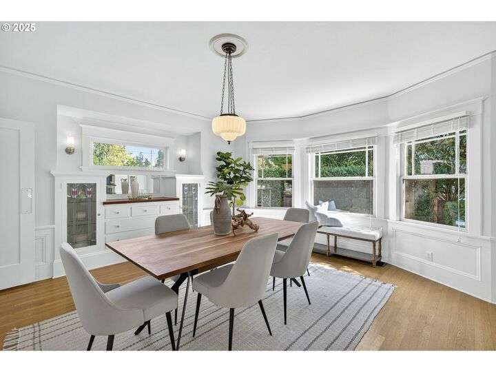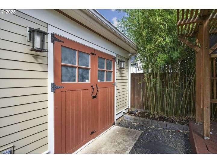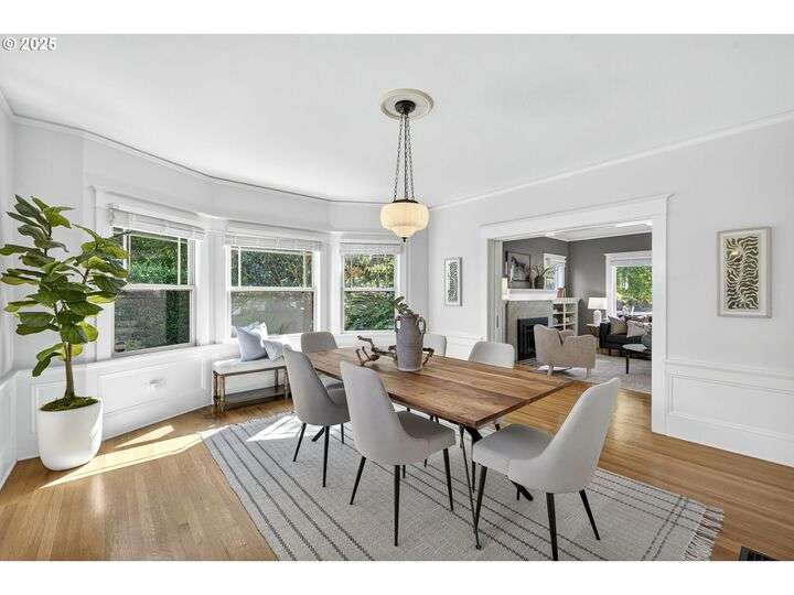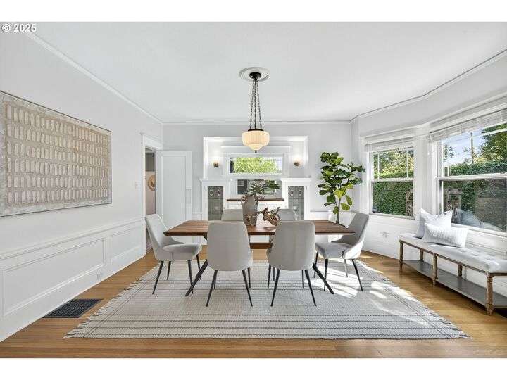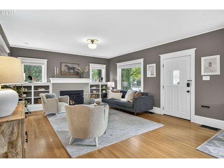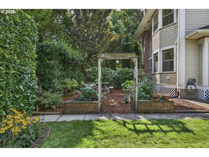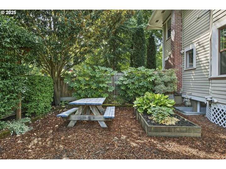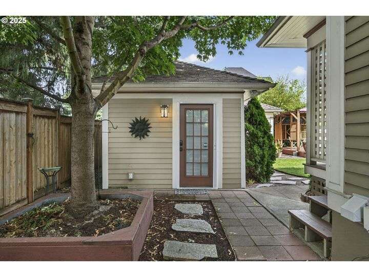 A beautifully maintained Old-Portland on an impressively landscaped corner lot. The main floor features an idyllic circular layout with original details preserved throughout: hardwoods, built-ins, gas fireplace insert, pocket doors, and a mudroom—plus numerous thoughtful updates. Recent improvements include newer double-paned windows, a brand new high-efficiency furnace, blown-in insulation, updated wiring, and a freshly stripped and repainted exterior. Upstairs, you’ll find a rare four spacious bedrooms and a nicely updated bathroom. The lower level, with its own exterior entrance, offers a lovely family room and a fifth bedroom with full ensuite bath. Outside, the private and established landscaping creates multiple special outdoor living spaces. Abundant storage can be found in the oversized garage (including overhead space), the storage shed, and the finished studio. This very special home truly showcases pride of ownership. [Home Energy Score = 4. HES Report at https://rpt.greenbuildingregistry.com/hes/OR10233089]