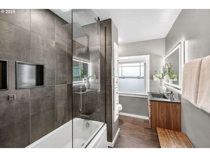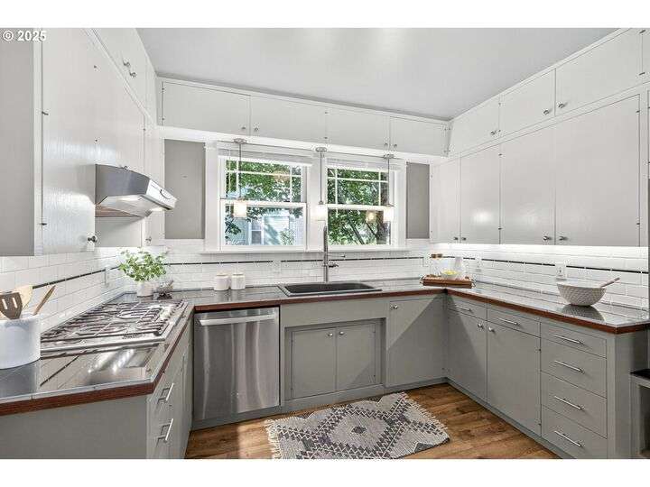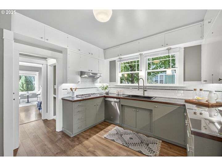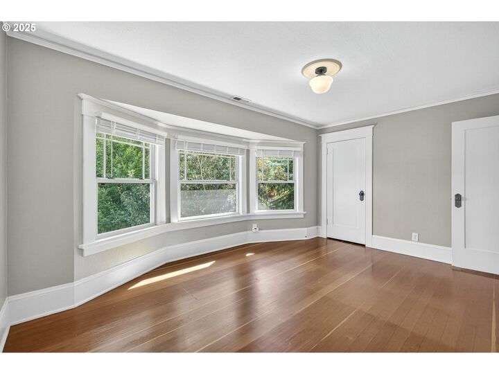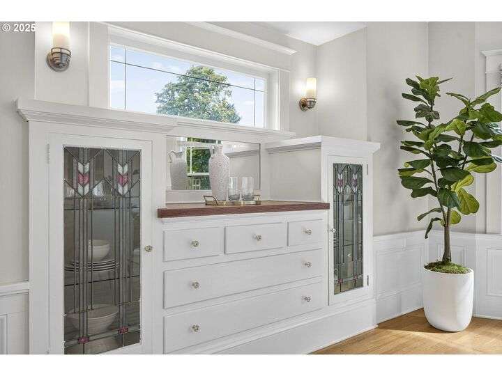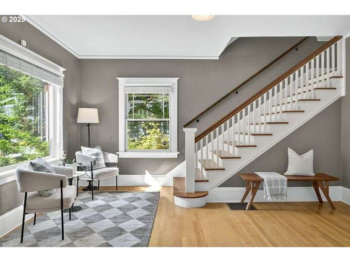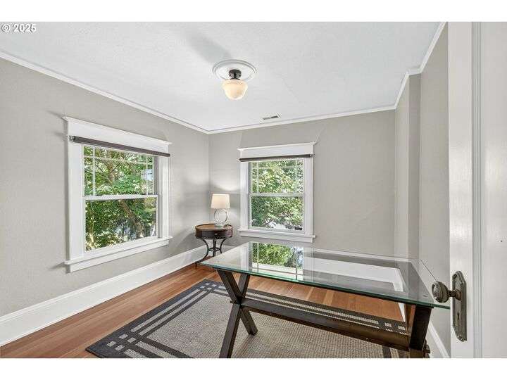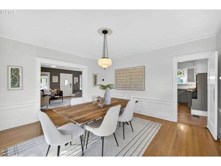 A beautifully maintained Old-Portland on an impressively landscaped corner lot. The main floor features an idyllic circular layout with original details preserved throughout: hardwoods, built-ins, gas fireplace insert, pocket doors, and a mudroom—plus numerous thoughtful updates. Recent improvements include newer double-paned windows, a brand new high-efficiency furnace, blown-in insulation, updated wiring, and a freshly stripped and repainted exterior. Upstairs, you’ll find a rare four spacious bedrooms and a nicely updated bathroom. The lower level, with its own exterior entrance, offers a lovely family room and a fifth bedroom with full ensuite bath. Outside, the private and established landscaping creates multiple special outdoor living spaces. Abundant storage can be found in the oversized garage (including overhead space), the storage shed, and the finished studio. This very special home truly showcases pride of ownership. [Home Energy Score = 4. HES Report at https://rpt.greenbuildingregistry.com/hes/OR10233089]