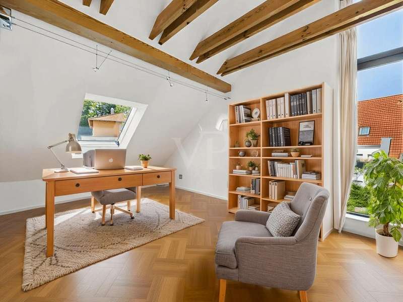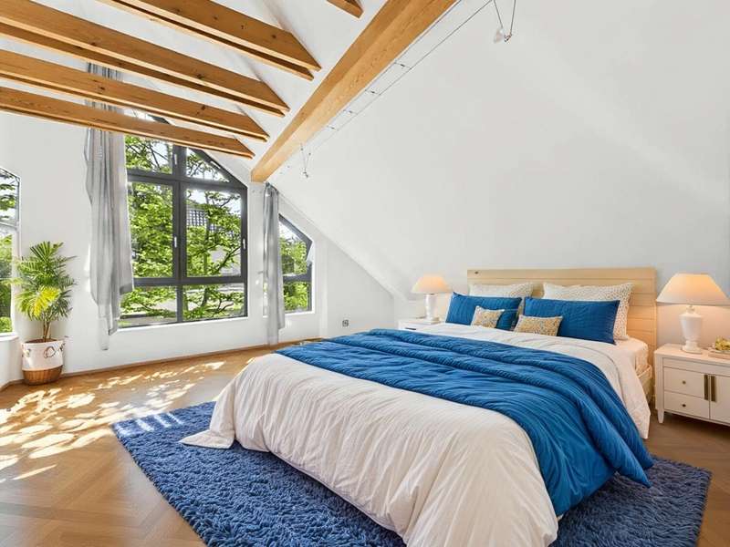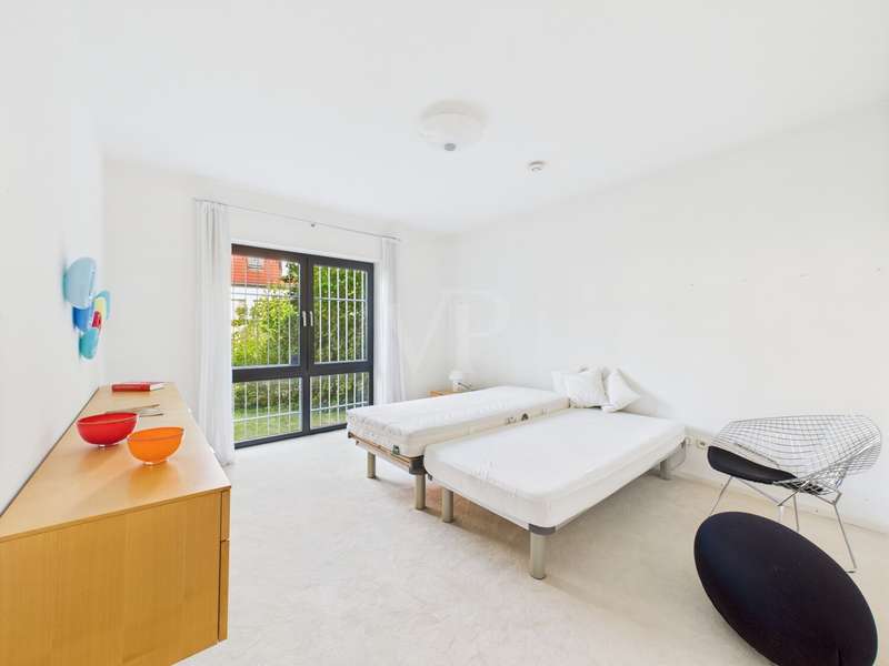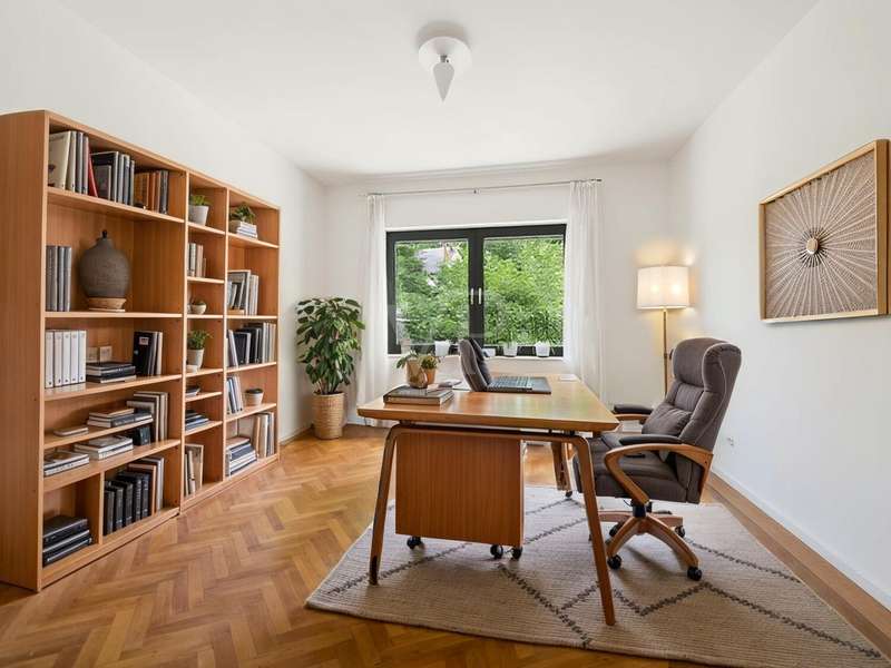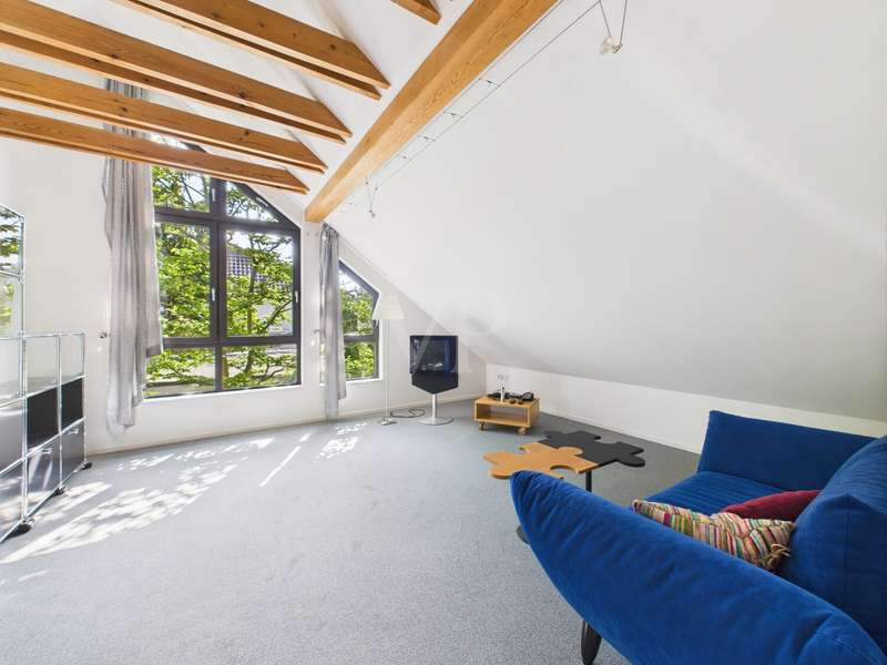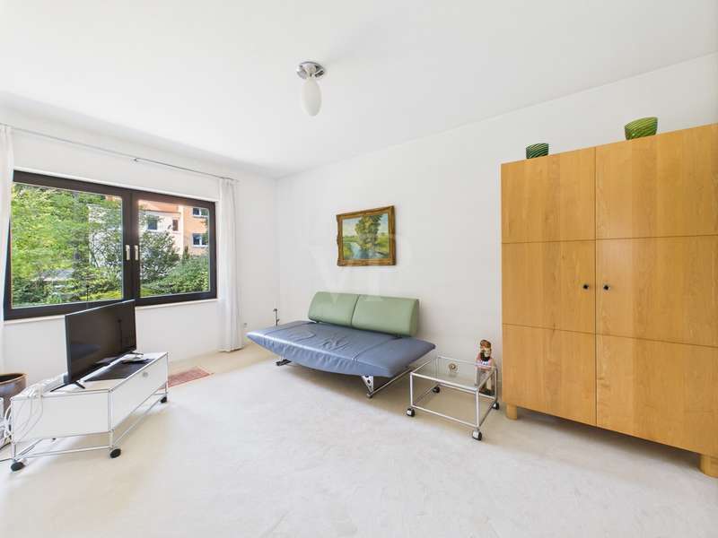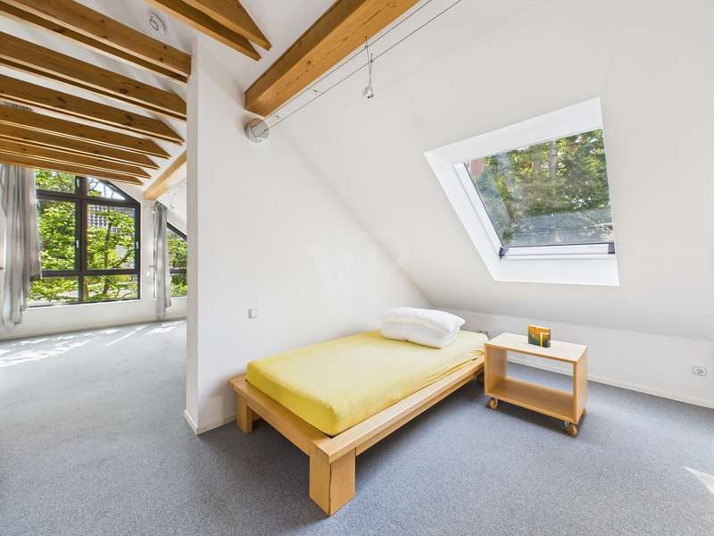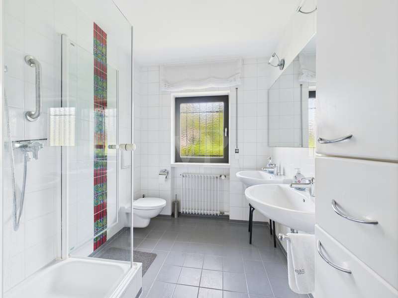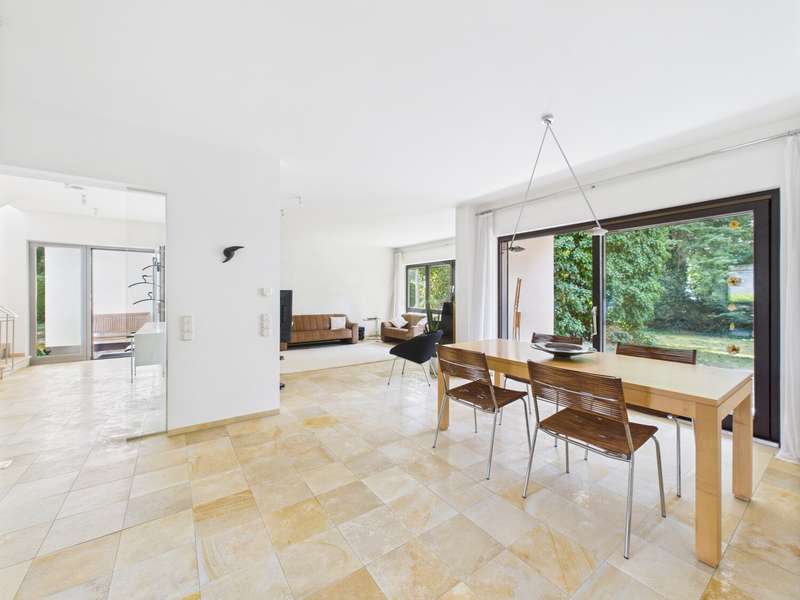 This well-kept detached house from 1978 offers around 215 m² of living space and a generous plot of approx. 822 m² with plenty of room for individual living dreams. The clever room layout makes it ideal for families, couples with space requirements or for use as a two-family home. A spacious, light-flooded living and dining area welcomes you on the first floor. Large window fronts create a bright, friendly ambience, while the adjoining terrace with its pleasant shaded area invites you to relax. The garden with its shady trees offers both children and adults a wide range of opportunities for recreation and leisure activities. The kitchen is directly adjacent to the living area, making it ideal for the person cooking to be involved in family life. A total of 6 rooms are available, including 5 bedrooms, which can also be used as work, guest or hobby rooms. The 3 bathrooms are cleverly distributed between the living areas, ensuring a high level of comfort. A practical laundry chute in the parents' area makes everyday life easier. In the basement, a spacious cellar with bathroom awaits your ideas - whether workshop, fitness room, sauna or hobby area. The large double garage offers space for two vehicles as well as additional storage space for bicycles and garden tools. The ground floor and upper floor are heated by modern underfloor heating, which provides comfortable warmth in all rooms. The last comprehensive modernization was carried out in 2000, giving the house a well-kept and contemporary appearance.