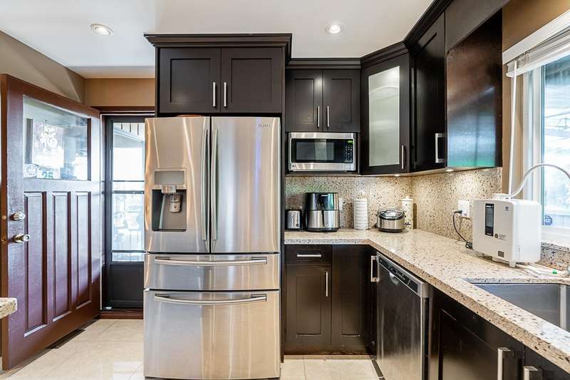 Move-in ready CORNER home in Burnaby North! Situated 66’ x 120’ lot, spacious 4-level split features a metal roof (2014), fenced yard with apple & cherry trees, large shed(2021), covered patio (2022), & wraparound sundeck with city views. SUBDIVIDABLE LOT. CLEAN TITLE. Parking includes a double garage, covered carport, two extra spots, plus LANE ACCESS. Inside boasts vaulted ceilings, quartz counters, two fireplaces, crystal dining lights, renovated kitchen (2016) Primary suite with walk-in closet & ensuite, plus 2 bdrms sharing a double-sink bath. Main level has a sunken family rm, laundry, 2 bdrms, basement has 3-piece and REC ROOM.