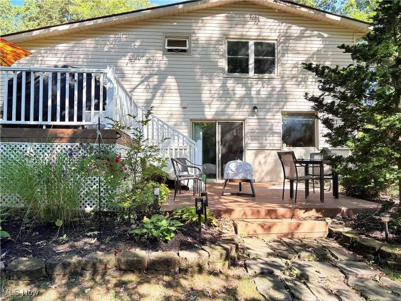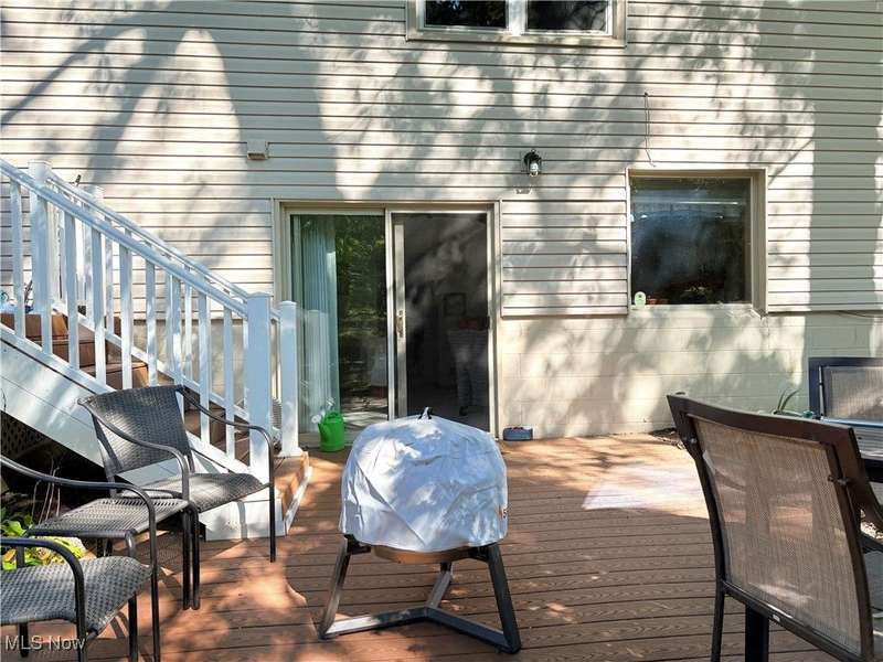 NO SIGN** PRICE REDUCED ** Wonderfully remodeled split level home * kitchen features Corian countertops / tile backsplash / lots of cabinets / open breakfast bar ** 3 full baths - one off the primary bedroom and other in the hall - both remodeled and the 3rd is off the family room in the lower level ( just a few steps down from the first floor) ** family room has a stone fireplace and an extra room off of it with a double door closet - could be easily finished to a 4th bedroom - currently makes a great home office ** living and dining room feature a vaulted ceiling ** roof tear off and replaced in 2024 ** condenser replaced in furnace and new central air in 2023 ** the BEST part is the lot - AMAZING .. you are drawn to it as you enter the front door and once you step out onto the spacious no maintenance deck - you just feel the peacefulness - wooded and treed backyard with a creek towards the back ** a few steps down is a 2nd deck that comes off the family room - just wonderful outside space ** great location in the City - close to the schools and highway access ** you will enjoy touring this home