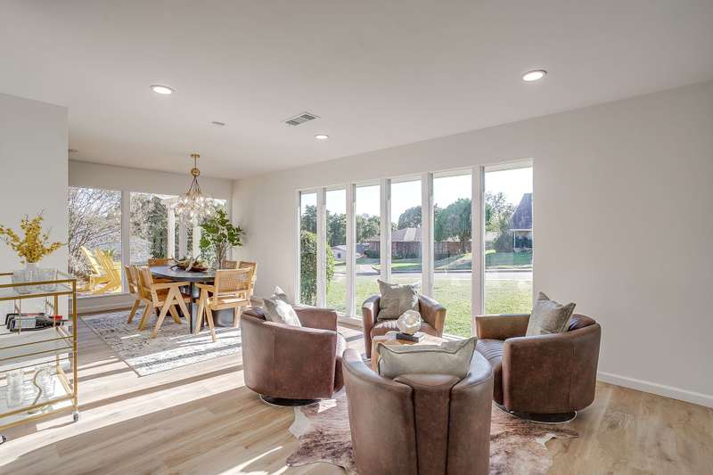Discover this mid-century modern gem flooded with natural light from more than 20 windows, offering a warm and inviting atmosphere throughout. Fully renovated from top to bottom, this home features an oversized, brand-new kitchen with custom cabinetry, granite countertops, brand-new stainless steel appliances, and new lighting, perfect for cooking, entertaining, and gathering.Enjoy peace of mind with all-new electrical, new interior plumbing, a 2024 HVAC system, new floors, new doors, recessed lighting, and a lifetime warranty on the foundation. The bathrooms boast custom vanities, adding a designer touch to every corner of this stylish modern retreat.Sitting on a large front and backyard, the property offers endless outdoor potential and includes a brand-new smart sprinkler system for easy maintenance. Located in a quiet, established neighborhood, youre minutes from Downtown Dallas, the Bishop Arts District, restaurants, shopping, and major highways.With its clean lines, abundant windows, thoughtful updates, and unbeatable location, this mid-century modern home is truly a rare finda move-in-ready gem blending timeless architecture with fresh, modern comfort.