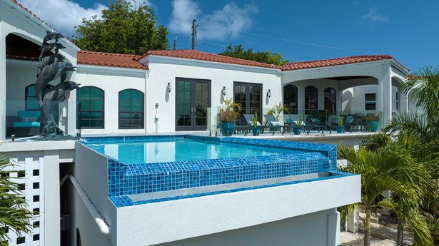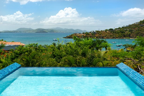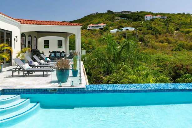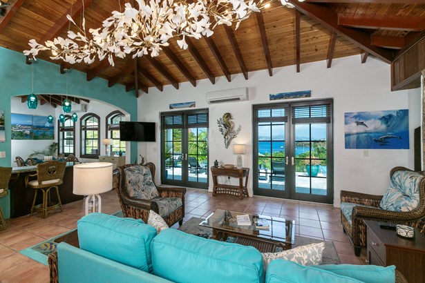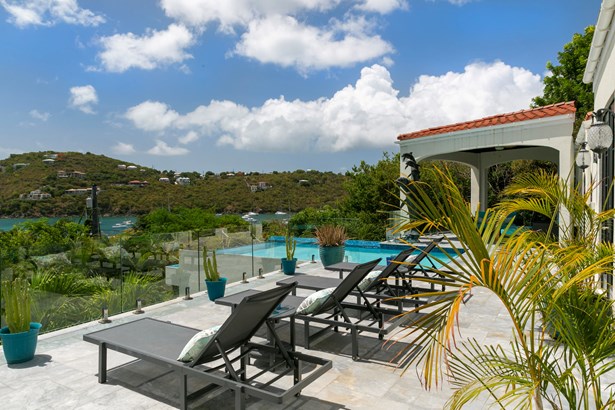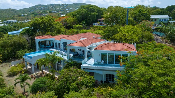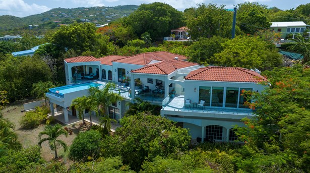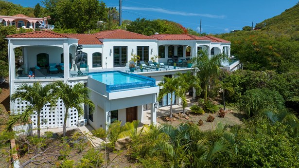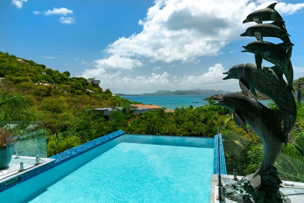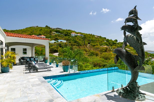 Perched on the ridge between Great Cruz Bay and Chocolate Hole, Blue Dolphin Villa is a stunning blend of modern elegance and Caribbean charm. Now expanded with over 1,000 sq ft of additional living space, the villa features a brand new primary suite, a private gym, and a playroom, enhancing both luxury and versatility. The pool deck, with its sleek glass railings, showcases sweeping views of Great Cruz Bay, while lush gardens, grand arches, and a covered pavilion create a serene outdoor retreat. Inside, the updated kitchen, charming stonework, and inviting bedrooms, make this home as comfortable as it is beautiful. With thoughtful upgrades and endless potential, Blue Dolphin Villa is a true island gem. SELLER FINANCING AVAILABLE