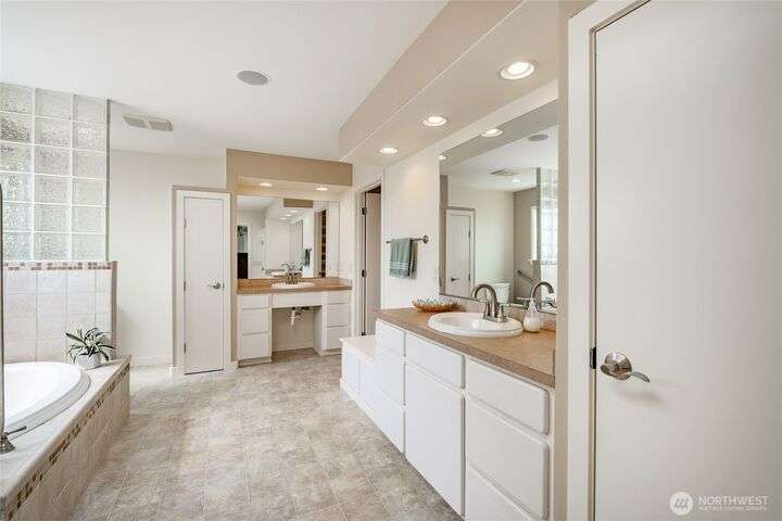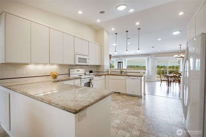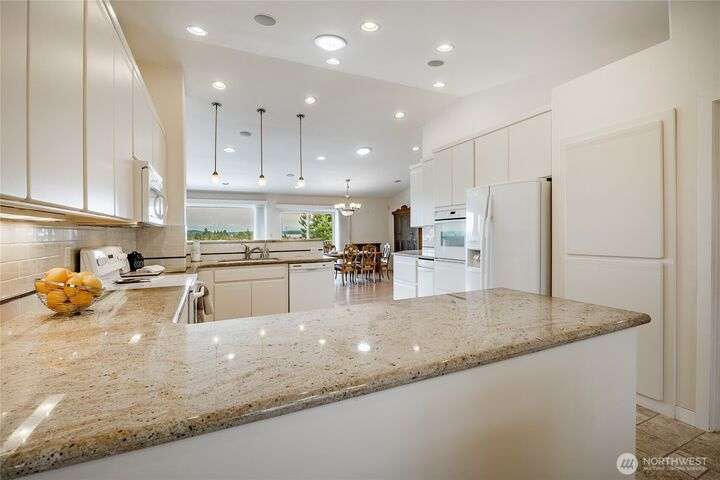 Exceptional Value at $201.00 a sq. ft. +/- Estate sale offering. Built in 2007 on a 10,890 sq. ft. homesite with water, marina and mount baker views. The home is 4703 sq. ft. and has 5 bedrooms, 3.5 baths, with separate living quarter suite on the garden level. There are 3 bedrooms including the primary on the 3112 sq ft main level, with 2.5 baths. There is also an office, separate crafts and utility room, gas fireplace, & deck access on the main level. The garage is a 3 car 845 sq. ft space with extra cabinets. There is 1591 sq. ft. of living on the garden level with 2 bedrooms, 1 full bath, 3 sided fireplace, kitchen with eating space, laundry & mechanical room & access to the patio. Garden level has great views with splendid patio space.