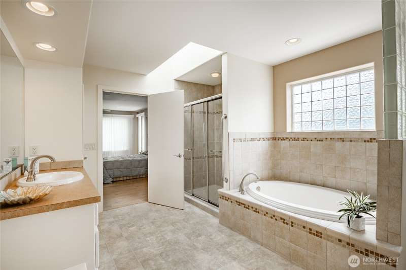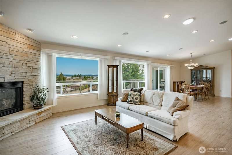 Exceptional opportunity for $232.00 a sq. ft. +/- Estate sale offering. Built in 2007 on a 10,890 sq. ft. homesite with water, marina and mount baker views. The home is 4703 sq. ft. and has 5 bedrooms, 3.5 baths, with separate living quarter suite on the garden level. There are 3 bedrooms including the primary on the main level, with 2.5 baths. There is also an office, separate crafts and utility room, gas fireplace, & deck access on the main level. The garage is a 3 car 845 sq. ft space with extra cabinets. There is 1591 sq. ft. of living on the garden level with 2 bedrooms, 1 full bath, 3 sided fireplace, kitchen with eating space, laundry and mechanical room & access to the patio. Garden level has great views with splendid patio space.