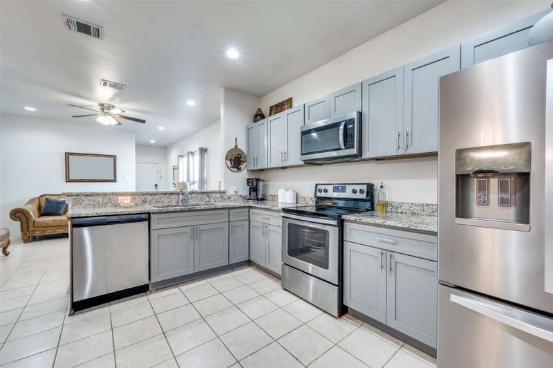 Welcome to this charming one-story home just minutes from Loop 12an ideal choice for first-time buyers! Step inside to find an inviting living room that flows seamlessly into the open kitchen and dining area, perfect for entertaining and everyday living. This home features ceramic tile flooring throughoutno carpet anywhere! The kitchen is beautifully updated with granite countertops, stainless steel appliances, and a convenient breakfast bar that overlooks the living space. Both bathrooms also feature granite countertops for a cohesive, modern touch. The spacious primary bedroom offers plenty of room for a sitting area or workspace. Enjoy the outdoors on the cozy front patio or the large backyard with a rear patio, providing endless possibilities for gatherings or relaxation. Located in the highly regarded Irving ISD, this home truly has it all. Dont miss your opportunityschedule your private showing today and make this home yours!