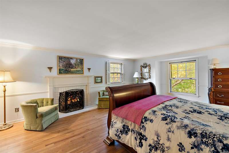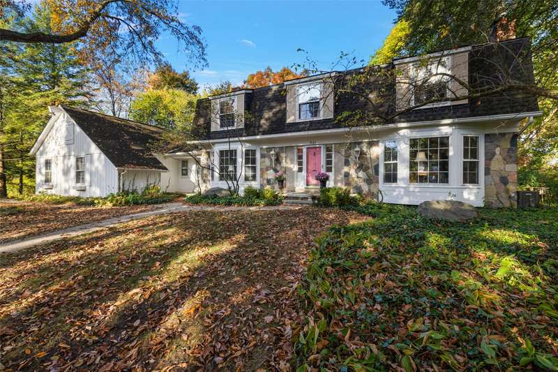 Welcome to this amazing opportunity to own over an acre in Bloomfield Hills! This Vermont-style, tastefully appointed home tucked away in a storybook setting, is a true classic loaded with character and charm, showcasing four fireplaces, an incredible floor plan, and a one-of-a-kind Cotswold fieldstone fireplace imported from England in the walk-out lower level. Elegance and functionality abound in this thoughtfully designed home, featuring a gracious foyer with wainscoting and crown moldings throughout. Two sets of bay windows on each side of the home welcome and invite sunlight and stunning views. The formal living room with fireplace flows into the adjacent dining room, where views of the vast grounds will delight. The rolling lawn and brick terrace including lighting system in the flower beds, allow ease in maintenance as well as entertaining. The bright kitchen with custom cabinetry, granite center island, two pantries, serving area, cafe door, and pocket doors are ideal for hosting. The family room also offers remarkable views, built-in bookshelves, bay window and impressive 5-foot fireplace with an incredible brick surround. Entertaining is a true pleasure in this generous family room with wet bar, beamed ceilings and wide-planked hardwood flooring, that lead to the expansive brick terrace overlooking the rolling lawn. Upstairs, five spacious bedrooms include a primary suite with cozy fireplace, vanity area, soaking tub, and separate shower. Additional bedrooms feature window seats and charming arched double doors connecting two of the rooms. The walk-out lower level boasts the spectacular stone fireplace, built ins and a secondary full kitchen with a gorgeous marble serving area. The lower level also includes a home office and updated full bath. The first-floor laundry/mud room also provides access to the rear yard. A 3-plus car garage completes the home. This home has endless potential for its next owners. Schedule your private tour today!