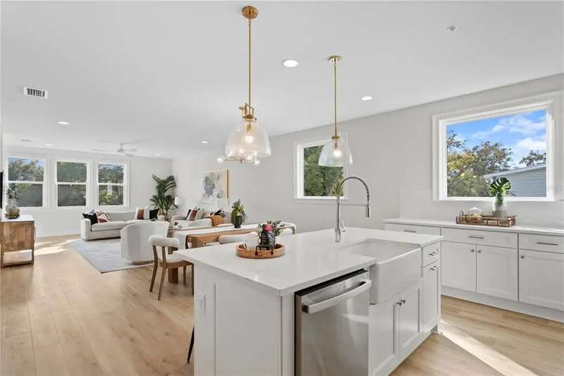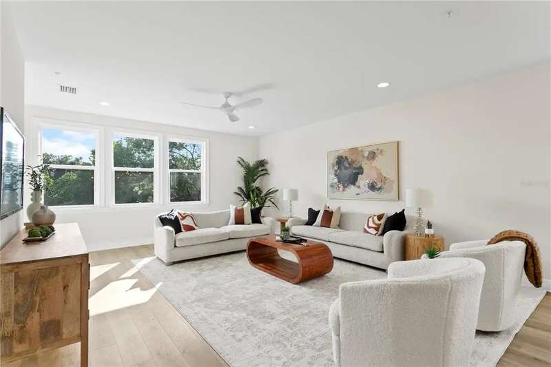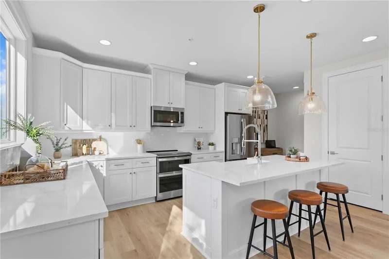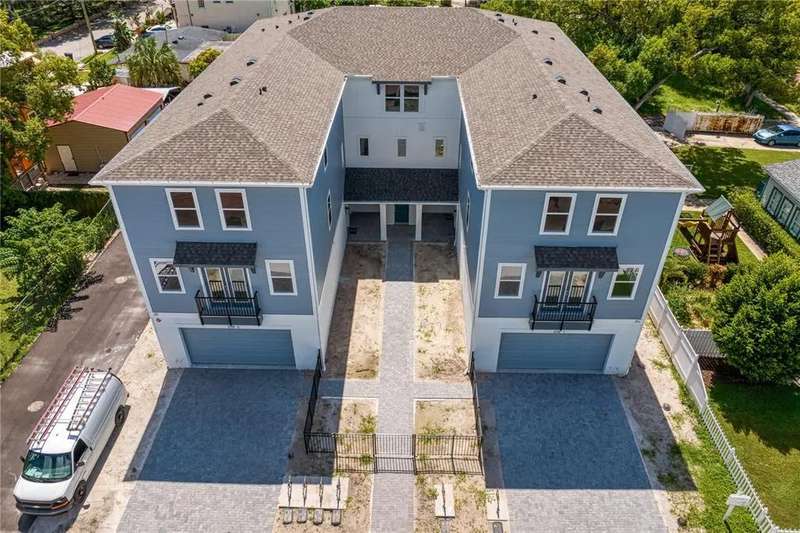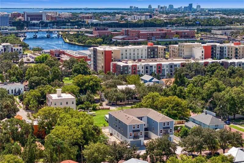 Frances Place sits beautifully in the golden quadrant of Tampa Heights. There is good reason to find peace of mind in this exquisite townhome community that sits 41 feet above sea level, reassuring you that your home is a safe haven from most any storm. NO FLOODING ISSUES ON THIS STREET during the hurricanes and NO FLOOD INSURANCE REQUIRED. As you approach Frances Place, youâ??ll be greeted by the Rosemary Beach design and a community courtyard that is a welcoming way to greet your guests. Each of the 5 homes in the community offer 4 bedrooms, one on the ground floor and the other three on the third floor, providing privacy and flexibility. On the main level youâ??ll be pleased to find wide open spaces with generous ceiling height, an abundance of natural light and oversized hurricane rated windows. Elegant in design, the enire unit is finished with luxury vinyl flooring that is a breeze to maintain and goes well with any home décor. The inishes in the gourmet kitchen are complete with quartz counters, brass hardware on gleaming 42-inch white wood cabinetry, high end stainless appliances and plenty of storage space. The bathrooms are all finished in marble countertops, and fine decorator tile. On the private bedroom floor, youâ??ll find the primary bedroom and two guest rooms, two full baths and laundry room complete with a GE profile washer and dryer. Block separaion walls between each residence ensure optimal sound insulation. Youâ??ll enjoy the convenience of a two-car attached garage with epoxy floors, but you may find yourself spending more time walking the few blocks to Armature Works and Tampaâ??s Waterfront Riverwalk. Frances Place brings the perfect blend of elegance, sophisicaion, and modern funcionality in a neighborhood youâ??ll love to call home.