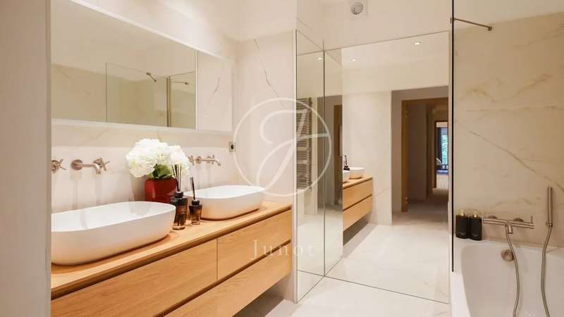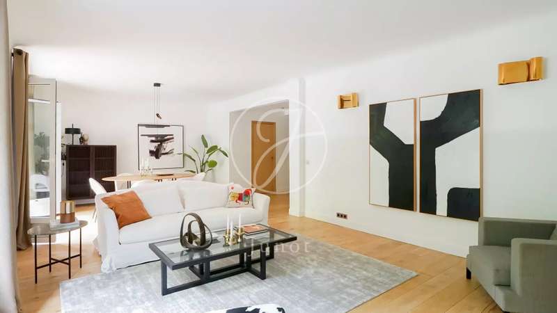 Located a stone's throw from the Pont de l'Alma on the Quai d'Orsay. This fully renovated and furnished 115.02sqm loi Carrez apartment, on the second floor of a luxury, guarded building, features a balcony with a splendid view of the Seine. This property offers an entrance hall, double living room, fitted kitchen, laundry room, two suites with their own bathroom, shower and toilet, dressing room and guest toilet. A large cellar completes the offer.
