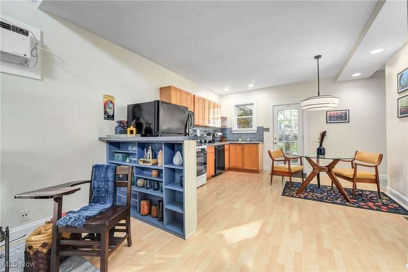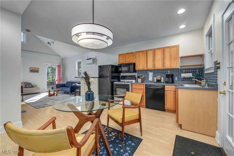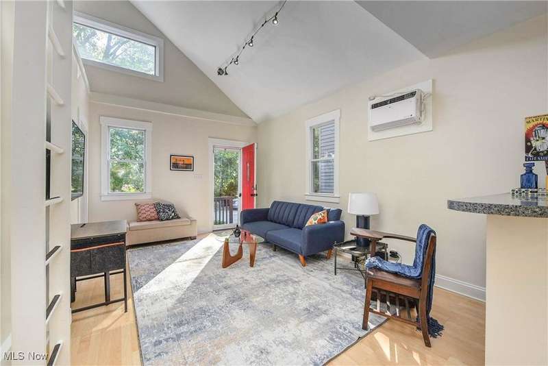 Incredible, rare opportunity to own a very cute move in ready cottage in truly one of the best locations in Cleveland! Northern Duck Island, surrounded by high end new construction homes and beautiful skyline views! Imagine mornings enjoying coffee and the sun on the back patio under the shade of your custom pergola. The majestic Guardians of Transportation greet you on your front step and welcome you to your own piece of this incredible city neighborhood. Duck Island is Cleveland's most desirable location, equal distance from Ohio City, Tremont and Downtown and boasting loads of it's own amenities including The Velvet Tango Room and miles of biking and hiking trails. This home is a lovely, welcoming alternative to a condo with creative interior spaces and a back yard oasis you won't believe you can find here in the city. The main living space is a 2-story living room leading to the eat in kitchen with ample counters and cabinets and nicely updated appliances. Off the kitchen is the storage/ laundry room and off the living room is the main floor bedroom with good sized closet. This is truly the space to live your best city life. Available fully furnished and on a month to month basis from now until June 1st, 2026!
