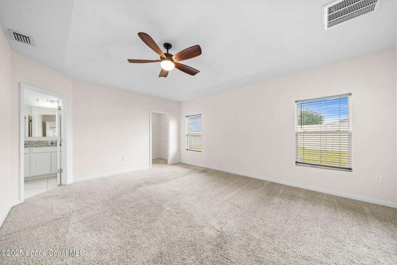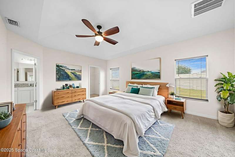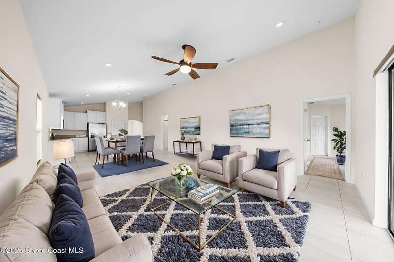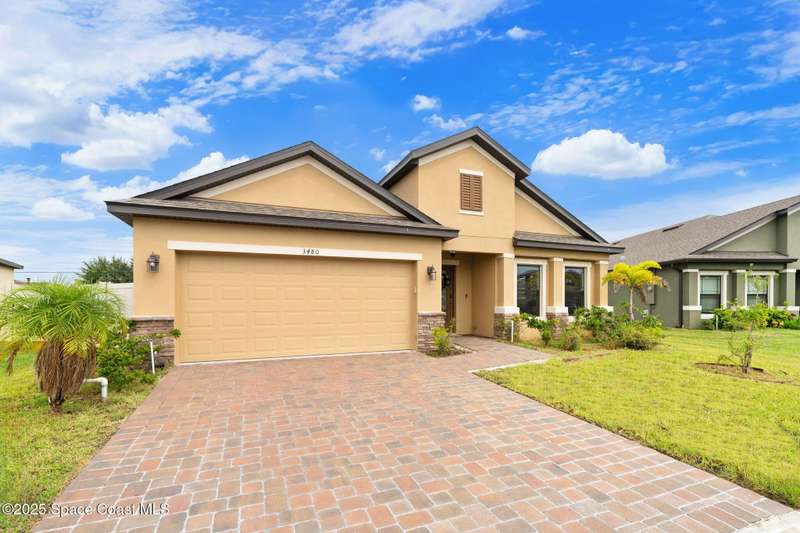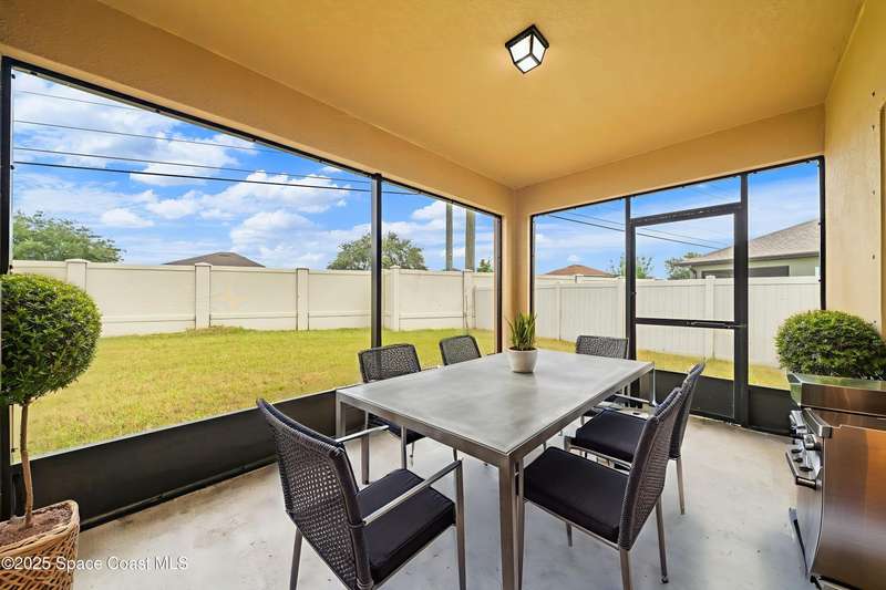 Welcome to this beautiful 2020-built Glenhurst model in the highly sought-after Palm Cove community of Rockledge! Built on one of the neighborhood's largest lots, this popular floor plan features an open layout with a bright kitchen boasting white shaker cabinets, granite countertops, and a large island that flows seamlessly into the spacious living and dining areas. The 18'x12' flex room with French doors is perfect for an office, playroom, or formal dining space. The owner's suite impresses with two walk-in closets, double vanities, a tiled shower, and a relaxing garden tub. Enjoy outdoor living on the screened patio overlooking the oversized, private fenced backyard. Additional upgrades include a new HVAC system, Low-E double-pane windows, storm shutters, and a brick-paver driveway. Centrally located minutes from The Avenues at Viera, I-95, beaches, and all the Space Coast has to offer, with a short commute to Orlando.