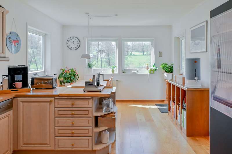 This spacious, light-flooded feel-good home offers plenty of space for individual living requirements with around 190 m². The house was built in 1996 and last extensively modernized in 2020, so that this exquisite property presents itself in a modern and appealing ambience. A particular highlight is the new conservatory, which was added in 2020 and wonderfully enriches the living experience. It is a wonderful place to relax and enjoy the view of the well-tended garden, even on colder days. The wood-burning stove in the living room creates a cozy atmosphere and complements the friendly interior, which exudes a timeless charm with its ship plank parquet flooring. The central ventilation system with pollen filter ensures a pleasant indoor climate all year round. The centrally controlled vacuum cleaner system underlines the demand for comfort and increased quality of life. Outside, a covered terrace and a fully equipped greenhouse invite you to linger and garden. The integrated cistern with a capacity of 6 m³ and pump for watering the garden ensures the environmentally friendly use of rainwater. The integrated garages should also be mentioned here, which offer direct access to the house and ensure additional comfort. In the basement there is an unused, new wood-burning stove, which offers additional comfort. This detached house not only offers plenty of space and flexible room layout options, but also a high level of living comfort and modern fittings. It is ideal for families looking for a home with high-quality features. We invite you to come and see this inviting home for yourself and would be delighted to provide you with more information or arrange a viewing.