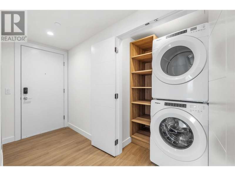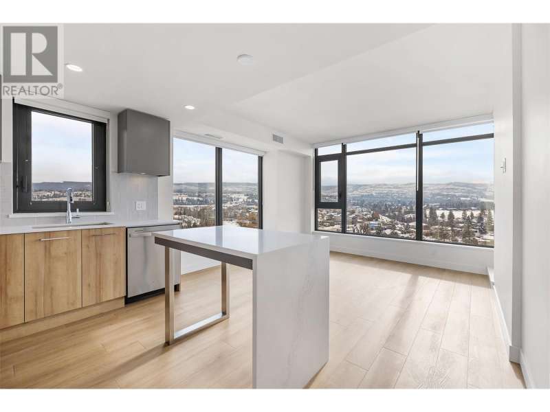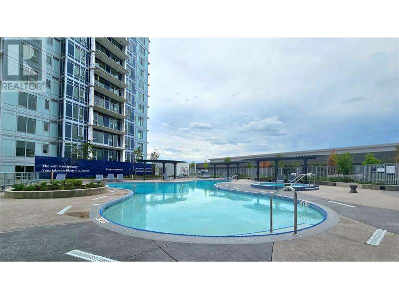 Welcome to lakeside luxury resort-style living at AQUA Phase 1 by Mission Group. Embrace the essence of waterfront relaxation in this South-East-facing 2-bed, 2-bath corner unit with charming patio, 1 secured covered parking stall, offering tranquil and mountain views. Deluxe closets organizers and laundry organizers upgrades. Dive into a lifestyle of leisure as you step into the world-class Aqua Boat Club, ready to embark on adventures of surf and sun across Lake Okanagan. 15 story solid concrete construction, 8"" of concrete between floors, oversized windows, central hot water system (included in strata fees), quiet & efficient heating & cooling in through VRV (variable refrigerant volume) & ERV (energy recovery ventilator) systems, fiber-optics wired, quartz countertops, premium stainless-steel appliance package, pet-friendly with no size restrictions. AQUA offers outdoor pool & hot tub on the 5th floor, lounge seating, landscaped BBQ area, two-story 2000 sq ft gym & yoga/meditation area, co-workspace, poolside fireside lounge, shared kitchen, dog wash station. Priority access to membership opportunities at the onsite world-class Aqua Boat Club (at current market rates, subject to availability). This stunning home invites you to explore the vibrant waterfront lifestyle, lined with enticing shops & delectable restaurants. 2-5-10 year new home warranty. GST Applicable. Measurements are approximate and should be verified if deemed important. (id:58403)