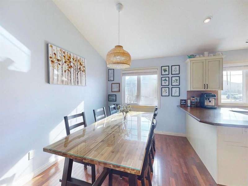 This beautifully maintained four bedroom, two and a half bathroom home with an attached double garage checks ALL the boxes. This exceptionally well executed floor plan is as close to perfect as you can get, with an open floor plan in the main living area, three bedrooms and two full baths on the upper level and a lower level WALK-OUT with a huge flex space, a fourth bedroom, a half bath and your laundry and storage area! Altogether, this home boasts over 1800SF of living space! The open plan living, dining, kitchen area features sky-high vaulted ceilings, loads of windows on THREE sides, including a big, west facing bay window in the living room. You’ll be cozy warm all winter long with your gas fireplace! The bright and sunny south facing kitchen and dining room, features a classic u-shaped kitchen, loads of counter top and cupboard space, plus a room for a huge table for your family to gather around. Upstairs you’ll find your primary bedroom, complete with ensuite and lots of closet space. There’s also two bedrooms for the kiddos and their own bathroom to share. The lower level walk out is perfect for summer days and nights. Here you’ll enjoy your back yard all year long, including your fire pit with stamped concrete pathway and sitting area. There’s also a patio and deck area, wired for a hot tub and ready for you to make it your oasis. There’s even room in the yard for your RV or an above ground pool, with a gate to the back alley! Front of house you’ll find your 18 x 21 double attached garage, with ample room for parking, toys, a workshop or just storage. It’s even already wired for your electric vehicle. If this sweet property sounds like home to you, reach out to your favourite REALTOR® and book a showing today!
