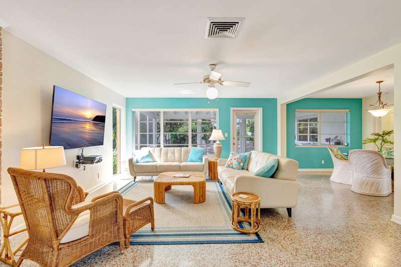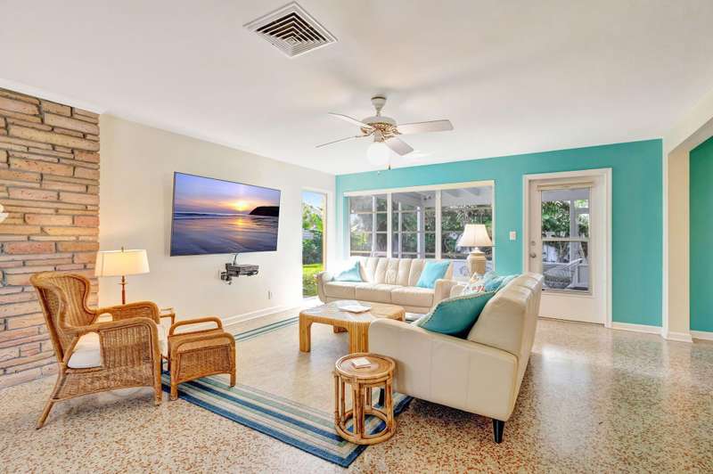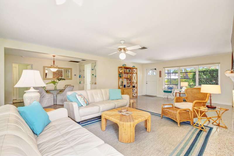 Only a block from the beautiful Palm Beach Shores beach and steps to great local dining. This fully furnished 3-BR 2-BA home offers classic Florida charm with terrazzo floors, a large tropical fenced yard, and a spacious screened patio with dining area and grill. The home comfortably sleeps six. With a fully equipped kitchen, fresh linens, cable TV, Wi-Fi, and a full-sized washer and dryer, this home has everything you need for a comfortable stay. Available for monthly rental May through November. One-month minimum stay required. Walk to the beach or use the included beach parking pass. Life is better in flip flops! 15 mins to premier shopping, dining, and entertainment. 20 mins to PBI.