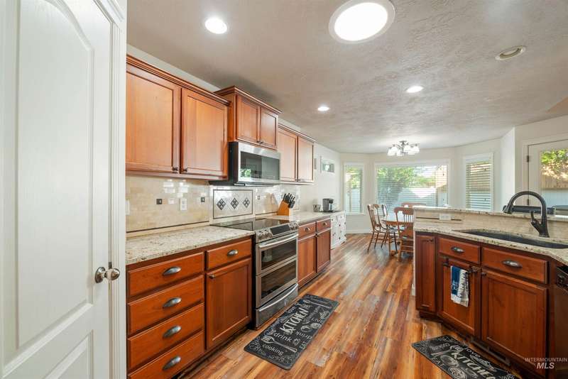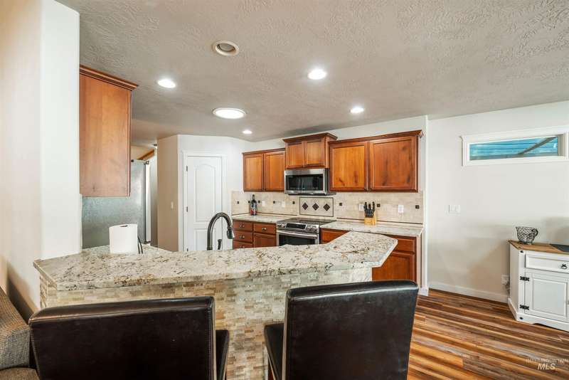 Beautiful Single-Level Home with Bonus Room & Premium Upgrades! This stunning home offers the perfect blend of comfort, style, and functionality. Featuring a single-level layout with an upstairs bonus room, it boasts an open-concept floorplan and a split-bedroom design for optimal privacy and flow. Step into the spacious living area with vaulted ceilings, new flooring, and a cozy gas fireplace, ideal for relaxing or entertaining. The kitchen is a chef’s dream with granite countertops, a large island with breakfast bar, and stainless steel appliances. The primary suite is a true retreat, complete with dual sinks, a soaker tub, separate shower, walk-in closet, and private walk-out access to the covered patio. Enjoy outdoor living with a covered patio, firepit, full fencing, and plenty of space for hobbies or guests. Additional highlights include: 3-car garage, RV parking, storage shed and the roof was replaced in 2023!