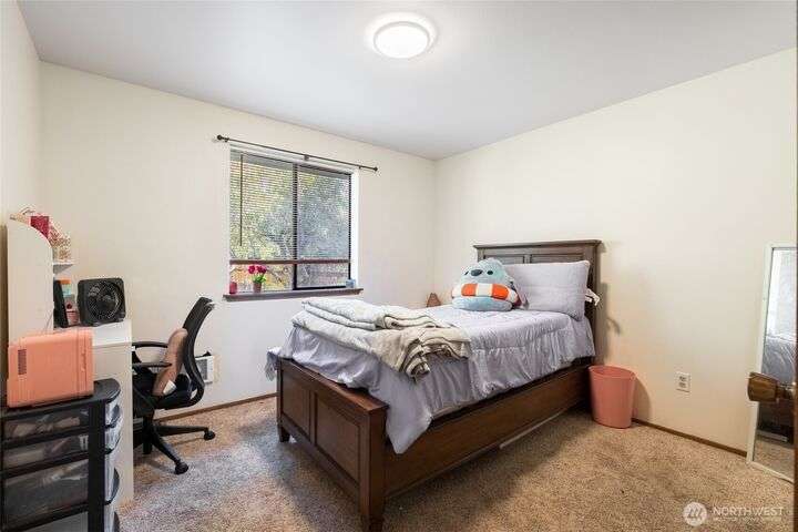 Affordable, single level, 2-bedroom 2 bath home in the Logan Creek development, on a dead end cul de sac. Large living area with bay window, open floor plan to dining and kitchen area. Primary bedroom has 3/4 attached bath and slider door to fully fenced back yard with apple and cherry tree. Single car detached garage. Desirable Mount Vernon location, close to schools, shopping and restaurants.