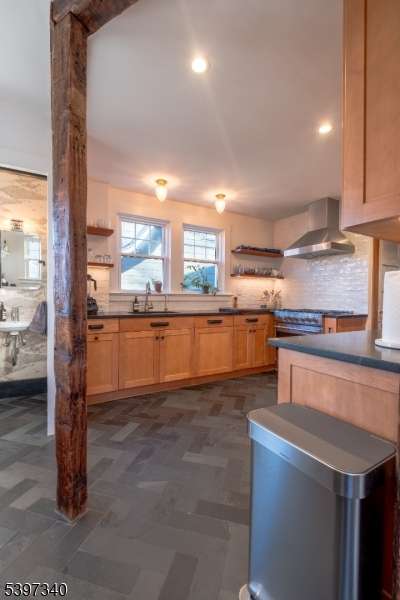 Step inside 36 Clarendon Place and fall in love with where old-world charm meets modern living. This beautifully updated 3-bedroom side-hall Colonial sits on a peaceful tree-lined street in Bloomfield, offering warmth, character, designer flair, and quality finishes throughout. Upon entering, you're welcomed into a living room with oak floors and a wood-burning fireplace, adjacent to a sun-filled den. The formal dining room features William Morris beaded wallpaper, adding timeless elegance. The dream kitchen offers high-end appliances, cherry cabinets, a slate floor, and a butcher's pantry with a breakfast bar, separated by an original wood pillar. A renovated powder room completes the first floor. Upstairs, the nicely sized primary bedroom includes a radiant-heated sunroom. Two additional bedrooms showcase sophisticated deep tones and textures. The well-maintained bathroom offers classic vintage charm with its retro tub and wainscoting. The third-floor is ideal for a home office, playroom, or creative space. Multi-level outdoor areas include a wood deck off the kitchen and a patio perfect for BBQs and entertaining. 2-car detached garage adds convenience and storage. Every corner reflects thoughtful updates and care, creating the perfect blend of comfort, style, and serenity. Completed in 2025, this true Bloomfield gem is just blocks from the shuttle bus to the train, GSP entrance, and NJ Transit bus, ideal for commuters. Home Warranty included for the buyer's peace of mind.