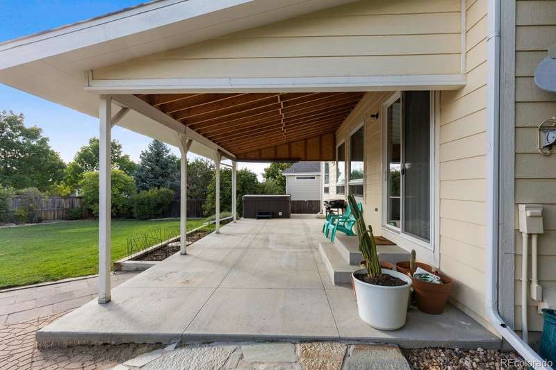 Tucked away on a quiet cul-de-sac in the highly sought-after Willow Trace neighborhood, this beautifully maintained home offers the perfect blend of comfort, style, and functionality. Situated on a generous .30-acre lot, this home is ideal for private recreation and entertaining. Step inside to discover gorgeous hardwood flooring, vaulted ceilings and an inviting open floor plan on the main level, featuring a cozy living room, large open family room with a gas fireplace, formal dining area, and a spacious eat-in renovated kitchen. The newer chef-inspired kitchen is a true showstopper, equipped with slab granite countertops, a Thermador Professional gas range, double ovens, vent hood, and a large center island. A dedicated home office or flex room with french doors, offers a productive space with natural light and privacy. Upstairs, unwind in the luxurious primary suite, complete with a full en-suite bathroom and a generous walk-in closet. Two additional bedrooms, a full bath, and a versatile loft space completes the upper level, all while offering views of the Rocky Mountains. The finished basement includes a non-conforming bedroom, 3/4 bathroom, and large flexible open space ready for your signature design. The beautifully landscaped large backyard features a stamped concrete patio and plenty of space for play and relaxation. A hot tub, fenced yard, and park-like setting create a true Colorado outdoor living experience. Additional highlights include newer roof and rain gutters in 2023, high-efficiency Anderson windows, and a three-car garage. Please see the supplements attachment for a list of improvements. Close proximity to shopping, dining, parks, and top-rated schools. This home offers the lifestyle you've been dreaming ofelegance, space, mountain views, and unbeatable convenience. Dont miss your chance to make it yours! Please see the supplements attachment for improvements.