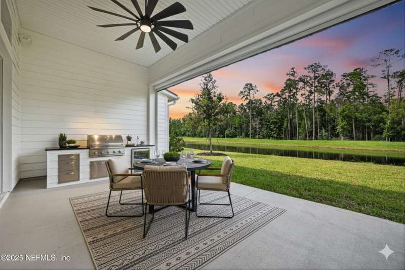 Welcome to Silverleaf Village, a premier master-planned community in St. Augustine, FL! This beautifully maintained waterfront home offers an open-concept floor plan featuring 4 spacious bedrooms, 3 full bathrooms, a versatile flex space, and a convenient casual dining area. The gourmet kitchen is a chef's dream, boasting wall ovens, a gas cooktop, quartz countertops, ceiling-height cabinetry, and a large island with seating; perfect for both everyday living and entertaining guests. Enjoy seamless transitions from the kitchen to the great room and dining area, enhanced by sliding glass doors that showcase serene pond views and lead to an oversized lanai with a retractable screen. The flexible bonus space can be tailored to suit your lifestyle, whether for a home office, playroom, or gym. Retreat to the spacious owner's suite, which features a luxurious spa-style bathroom with split vanities, custom tilework, and a roomy walk-in shower. Three additional bedrooms provide comfort and privacy for family or guests. Designer upgrades throughout include custom paint, wainscoting, built-in cabinetry, wood flooring, an arrival station and upgraded lighting. Silverleaf Village offers residents an array of amenities with no CDD fees: swimming and lap pools, splash park, tennis and pickleball courts, clubhouses, and more. Top-rated schools, popular restaurants, shopping, beautiful beaches, and historic downtown St. Augustine are all just minutes away. Schedule your showing today.