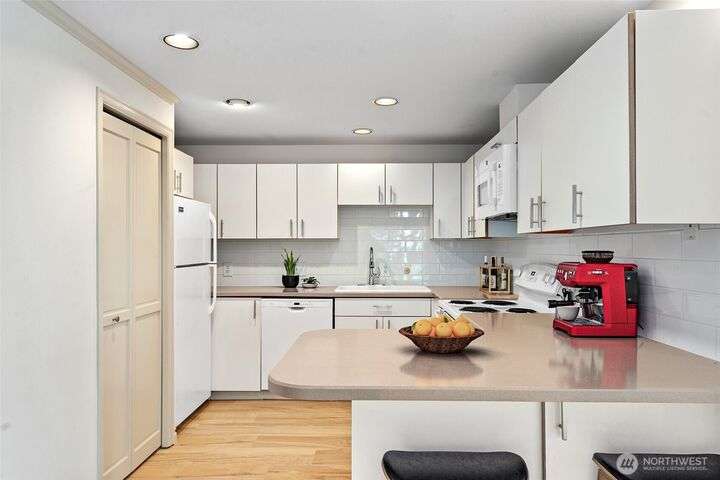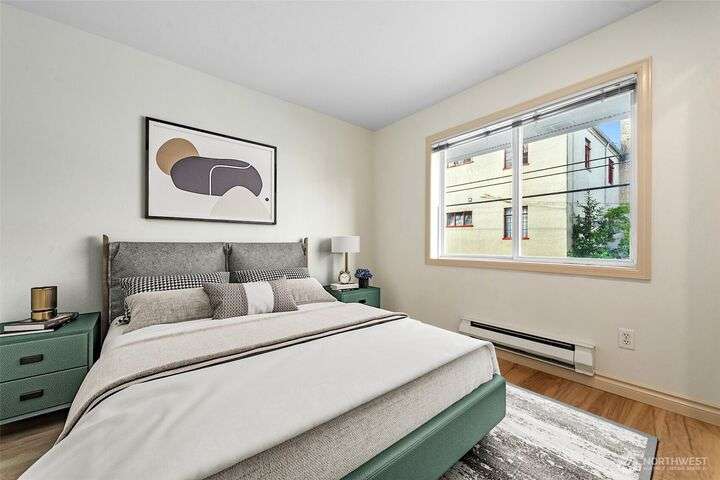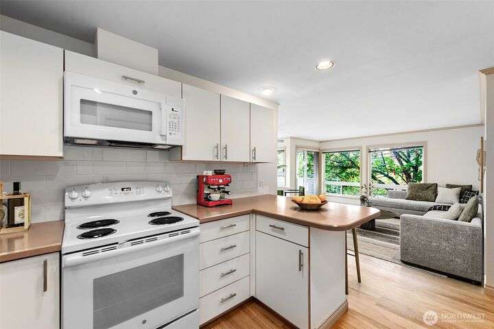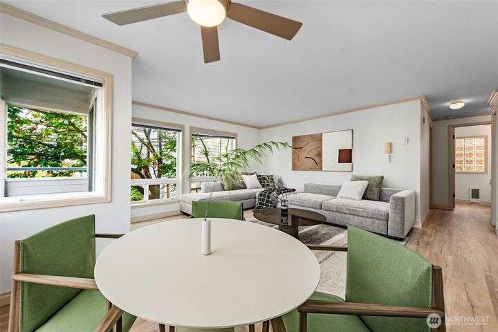 Enjoy living in one of Seattle's best Neighborhoods with an unbeatable location close to Downtown, South Lake Union, University of Washington, and Capitol Hill. Walkable to great Restaurants, Coffee, and the Shores of Lake Union. Bright Northwest corner 2 Bedroom with abundant Windows and excellent natural Light. Private, covered Deck off the Living Room. Brand-new Paint, LVP Flooring, & Baseboard Trim throughout. Kitchen has brand-new Microwave & White Subway Tile backsplash. New Ceiling Fan with Remote. In-unit Washer/Dryer. Gated Garage parking space included. Interior hallways just repainted. The building has 2 Guest parking spaces on the Alley & convenient access to I-5. Affordable HOA Dues & No Rent Cap. Pets are welcome.