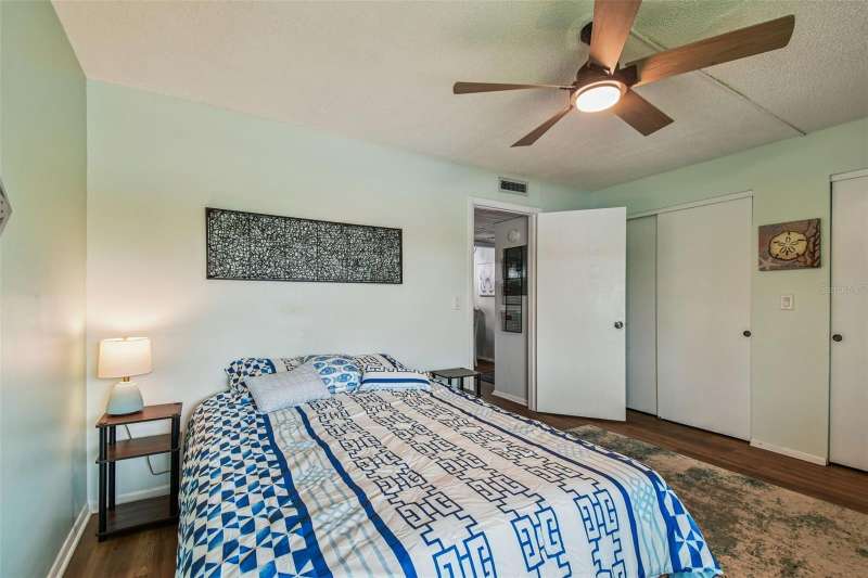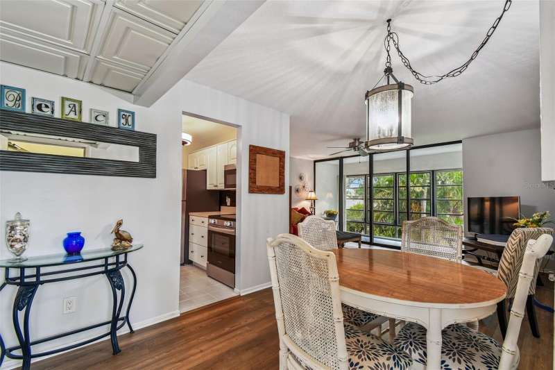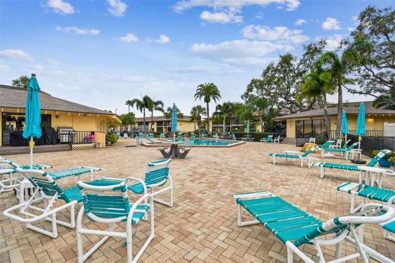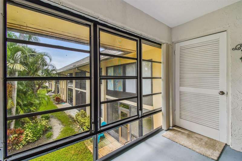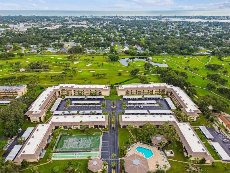 Welcome to this bright corner unit located on the second floor of the highly desirable 55+ community, Villas de Golf. Just steps from the entrance to Largo Golf Course, this one bedroom, one bath condo is perfectly situated for both relaxation and convenience. The condo comes fully furnished, allowing you to move right in and immediately begin enjoying the Florida lifestyle. Recent updates include a new electrical panel installed in April 2023, a new bedroom window in 2025, and new refrigerator, microwave and range in 2024. The association is financially stable with no upcoming assessments. The unit features vinyl flooring throughout, an enclosed lanai with a convenient storage closet, and the community laundry room is located just steps from your front door. You will also enjoy a covered, assigned parking space. Residents of Villas de Golf enjoy a wide range of amenities including a heated pool that is open year-round, a recreation center and clubhouse with a kitchen for private gatherings, tennis and shuffleboard courts, and barbecue grills for your personal use. With affordable monthly fees and a turnkey setup, this condo is the perfect place to host friends and family, stay active, or simply relax and enjoy life by the beaches.