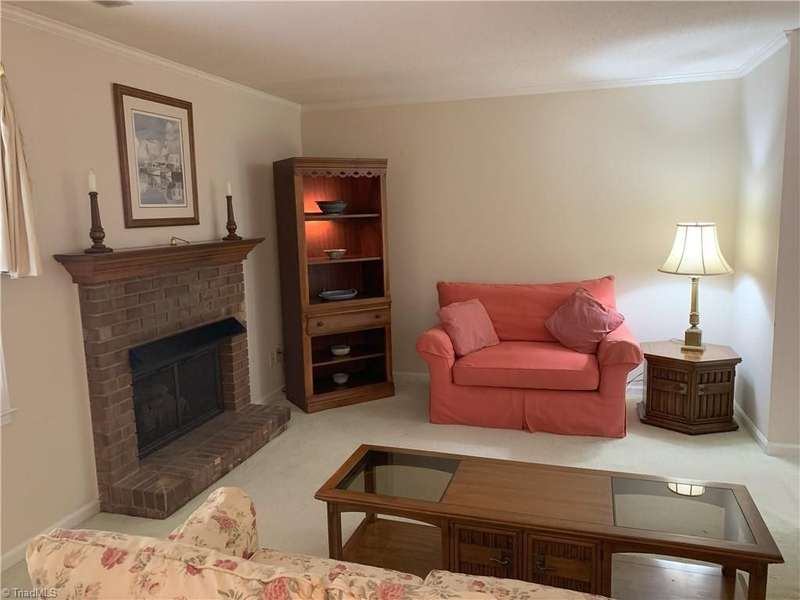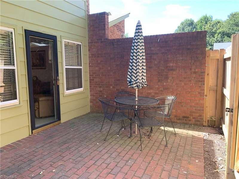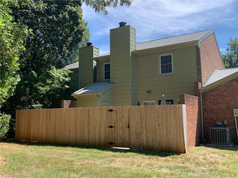 Nestled in a cozy courtyard of Hamilton Village, this 3 BR townome features the perfect blend of tranquility and potential. Its design and layout offer endless possibilities for creating your own personal touch. Large living room features firplace with gas logs and access to a patio w/privacy fence. The kitchen boasts a functional layout, walk in pantry and new disposal. Spacious Primary BR includes a walk in closet and updated ensuite. Neighborhood pool is a welcome relaxation in the summer. Only minutes from shopping, restaurants, parks, and Guilford College make this an ideal location. Refrigerator, washer/dryer remian. While the owner has maintained the house very well - she wishes to sell the home as is. Schedule a viewing today and envision the endless possibilities that await you.