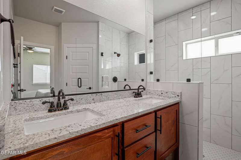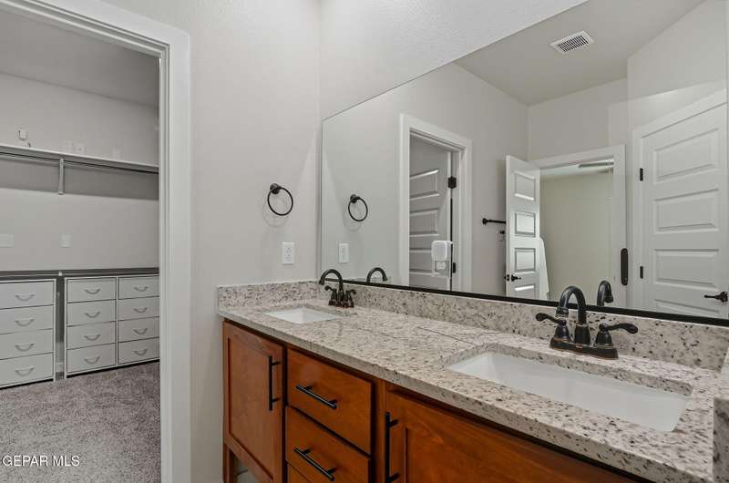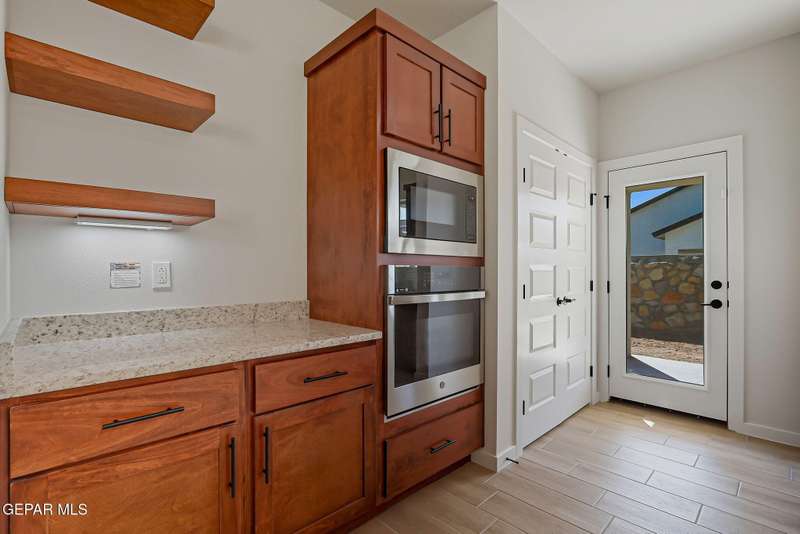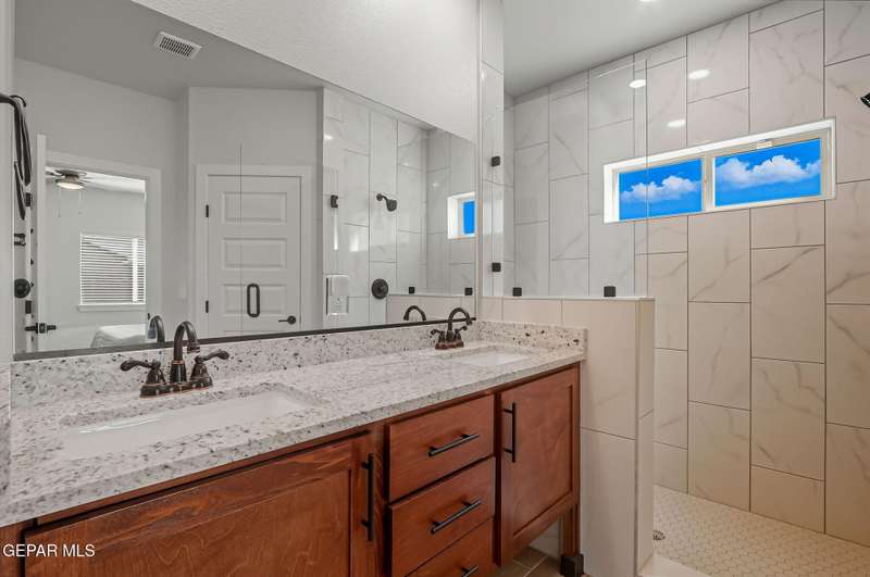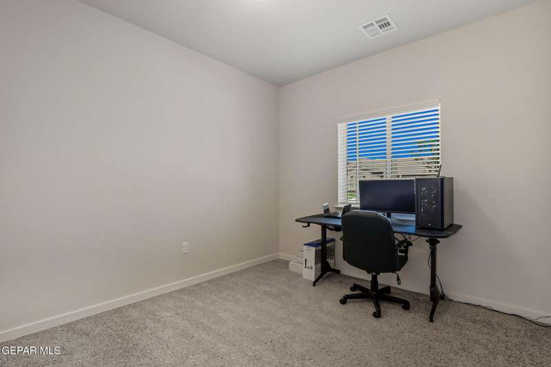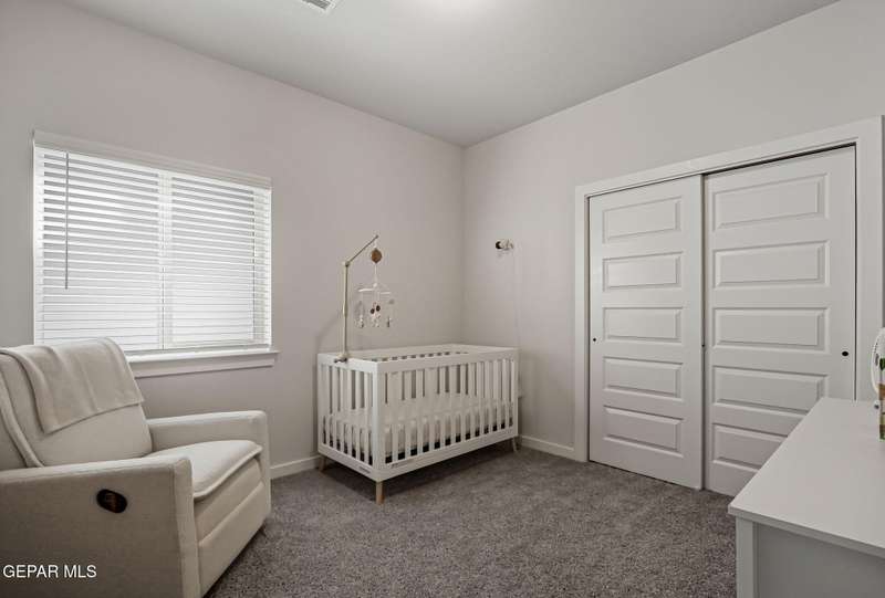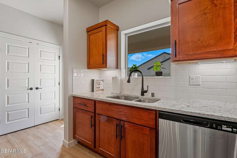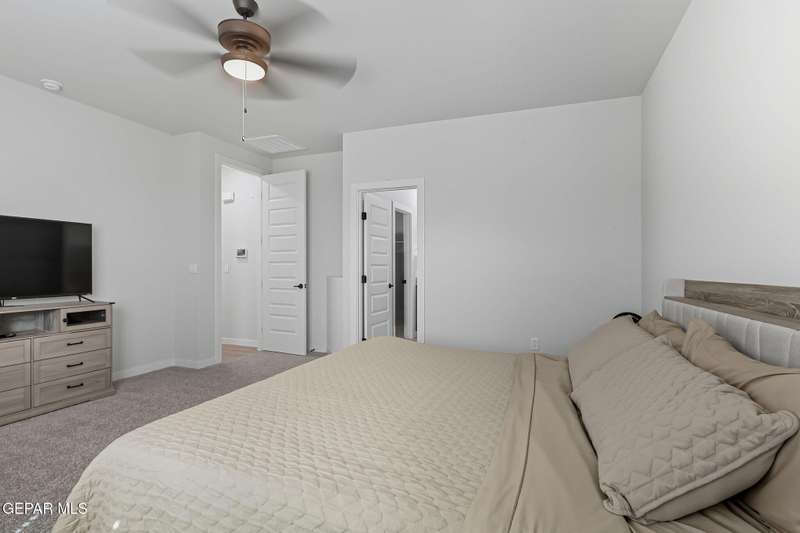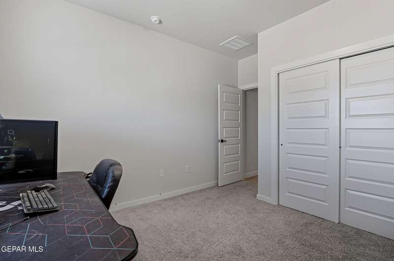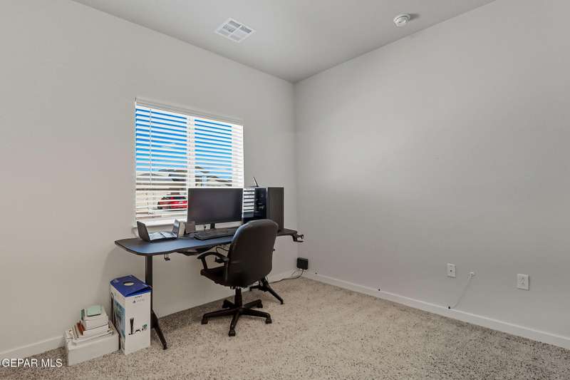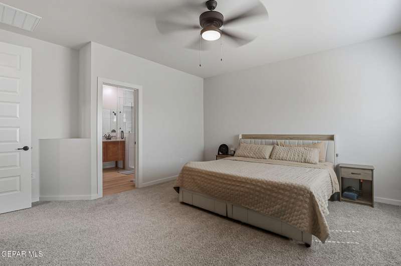 Beautiful single-story home featuring an open-concept design with high ceilings and spacious living areas. The large family/living room flows seamlessly into the kitchen and dining areas-perfect for entertaining. The kitchen offers a center island, granite countertops, stylish tile backsplash, stainless steel appliances, pantry, and cabinets with crown molding. This home includes four inviting bedrooms and two full baths. The primary suite boasts a generous walk-in closet and a luxurious bathroom. Leased solar panels help keep electric costs low year-round. Located in the desirable Campo Del Sol community, residents enjoy resort-style amenities including a lazy river, pool, parks, and scenic walking trails. With a low annual HOA and convenient proximity to schools, shopping, and Fort Bliss, this home combines comfort, value, and lifestyle in one exceptional package.