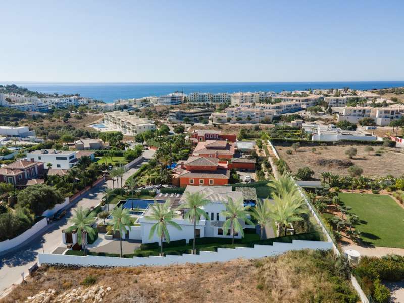 This luxury 4+1 bedroom villa, currently under construction, is conveniently located in the exclusive residential area of Porto de Mós, in Lagos, Algarve. On the ground floor there is a fully equipped kitchen in open space with a large living and dining room, two bedrooms, one of them en suite, an office that can be transformed into another bedroom and a bathroom. On the upper floor there are two other bedrooms, both en suite, and direct access to the terrace. The exterior of this property consists of an extensive garden, swimming pool, barbecue, an outdoor dining area, and garage. Once completed, this villa will undoubtedly be one of the finest properties in the neighborhood. Located within walking distance of the magnificent Porto de Mós beach, close to all kinds of services and amenities and 1 hour from Faro International Airport. CHARACTERISTICS:Area: 560 m2 | 6 030 sq ft Building Area: 560 m2 | 6 030 sq ft Energy efficiency: Certification in progress FEATURES: Fully equipped kitchen with Bosch brand Four bedrooms Three suites Office Underfloor heating Air conditioning Terrace Garden Barbecue Swimming pool Garage