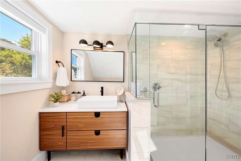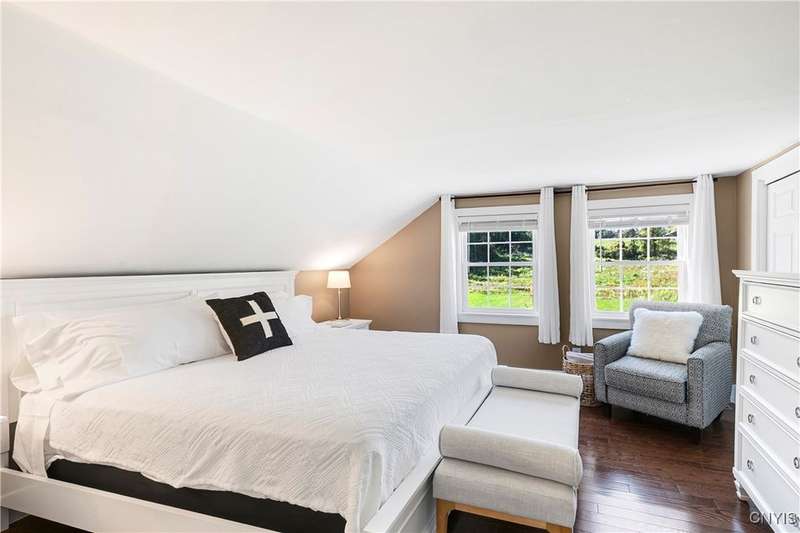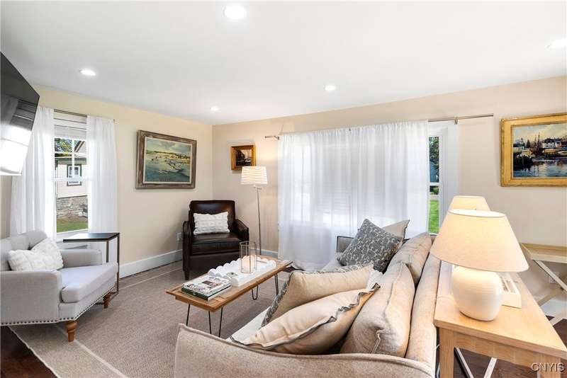 Stunning, fully furnished 3-bedroom, 2-bath home available for rent. The house sits on 2 acres in the sought-after Skaneateles School District. Comprehensively renovated in 2022 with beautiful furnishings and decor throughout. The chef's kitchen features premium GE Cafe stainless steel appliances, including a double oven gas range, microwave drawer, and wine cooler, plus custom cabinetry, granite counters, a spacious island, and a walk-in pantry. New hardwood flooring and luxurious bathrooms with marble, ceramic tile, and a walk-in glass shower. First-floor laundry for convenience. Exceptional outdoor amenities include Skaneateles Creek waterfront access perfect for trout fishing, a park-like backyard with breathtaking views, composite deck patios, and extensive professional landscaping. This meticulously maintained turnkey retreat offers the perfect blend of luxury, convenience, and natural beauty. 3-month minimum lease required.