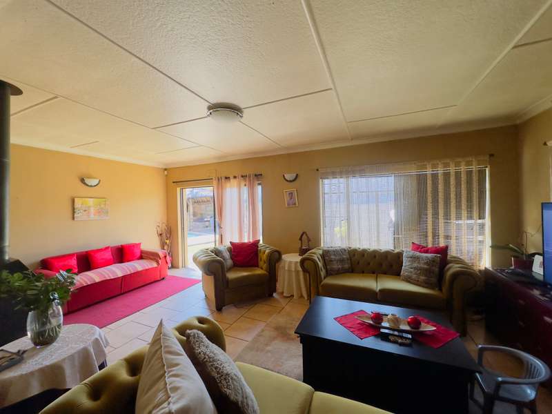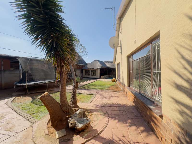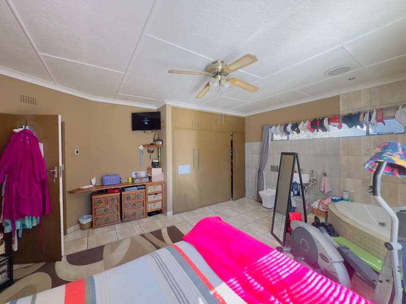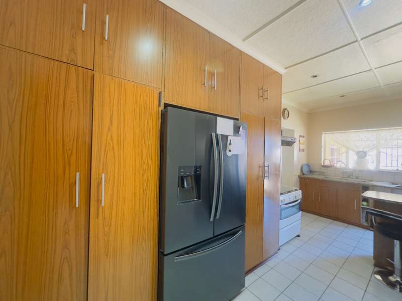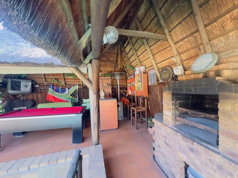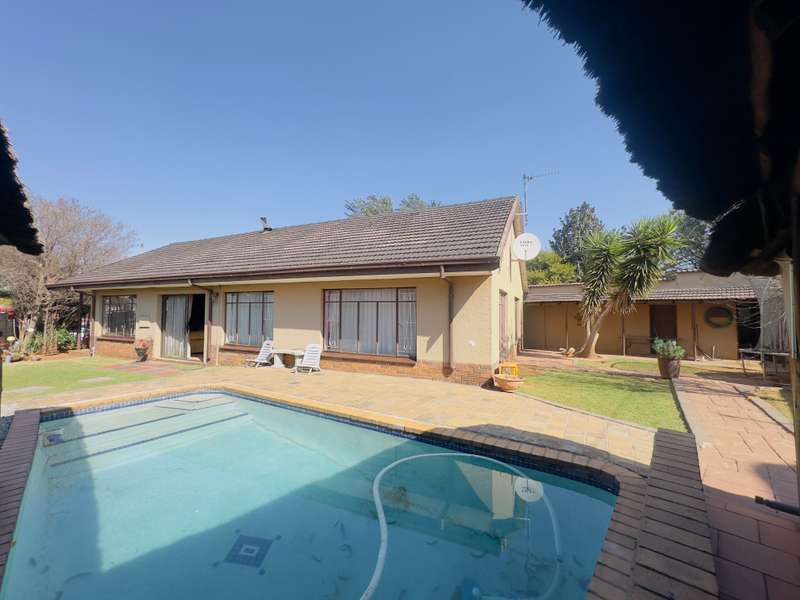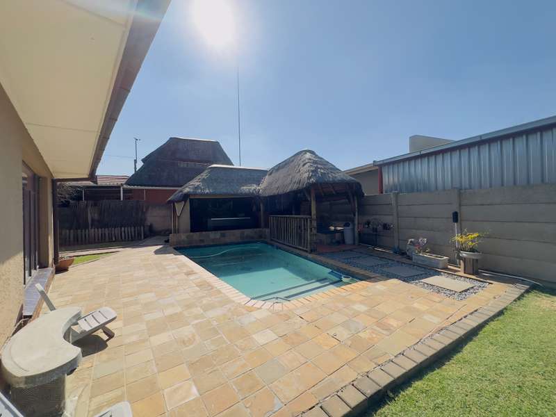 Welcome to this well-appointed 4-bedroom home, offering a perfect blend of comfort, functionality, and outdoor leisure—ideal for families and entertainers alike -Boasting 4 generously sized bedrooms and 2 bathrooms, including a main en-suite (MES) for added convenience. The modern kitchen features a gas stove, ample cupboard space, and a cozy breakfast nook—perfect for casual family meals. Adjacent to the kitchen, you’ll find a separate dining area and a warm, inviting lounge with a fireplace, creating a relaxing atmosphere all year round. Outdoor living is made effortless with a thatched lapa, complete with a built-in braai, ideal for hosting friends and family. Cool off in the sparkling swimming pool or unwind in the tranquil garden setting. Additional features include: • 1 garage and 1 carport • Staff quarters with toilet This property offers everything you need for comfortable family living and effortless entertaining. Don’t miss out—schedule your private viewing today!
