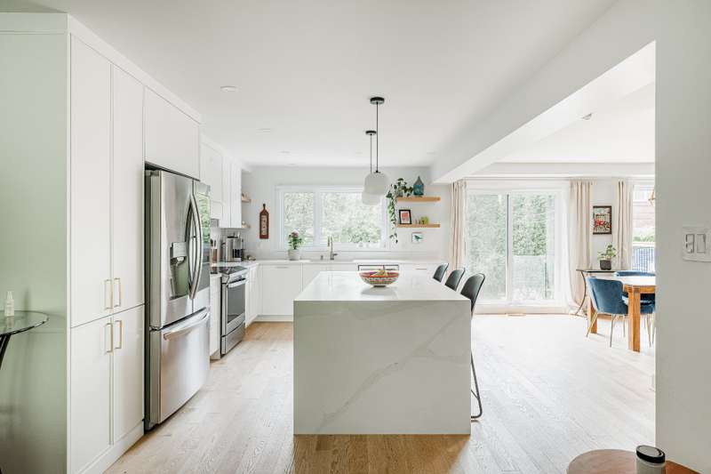 Unique on the market - Fully renovated single-family home offering stunning views of the river. Three bedrooms, including a master suite with an en-suite bathroom. Open living area and formal living room at the front with soothing views. Electrical and plumbing redone. Basement converted into a large family room with the possibility of adding a bedroom. Redesigned backyard with a pool. Prime location near schools, services, transportation, bike path, and the Vague a Guy, without the traffic. A rare opportunity not to be missed!
