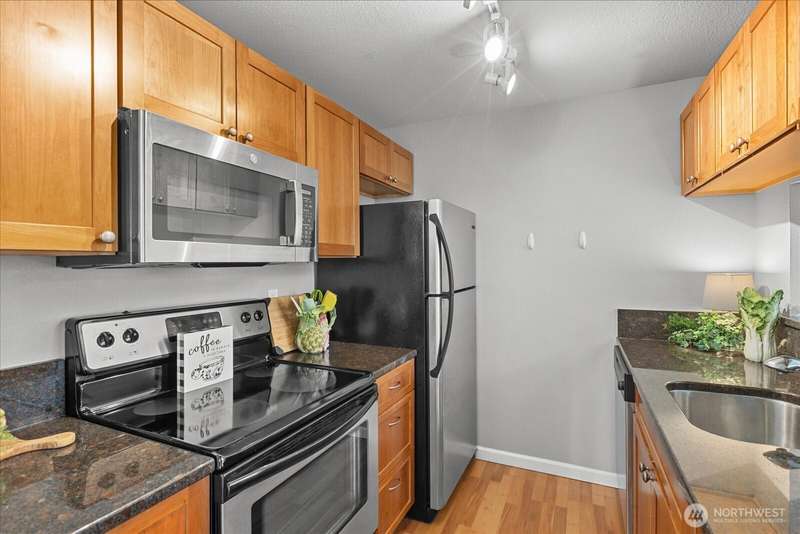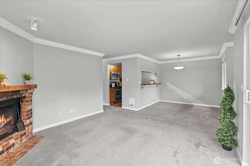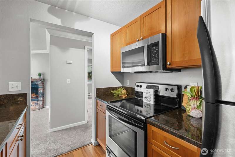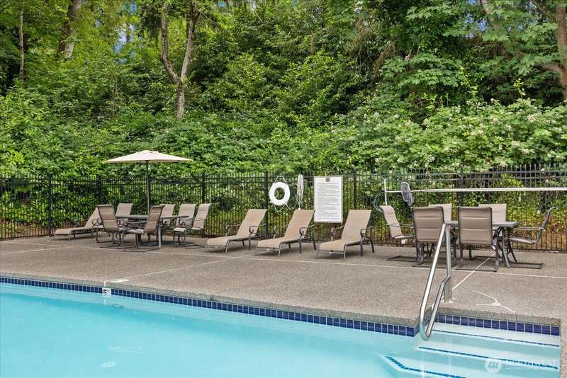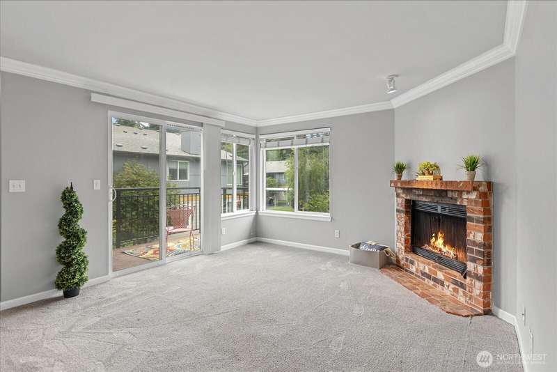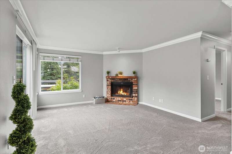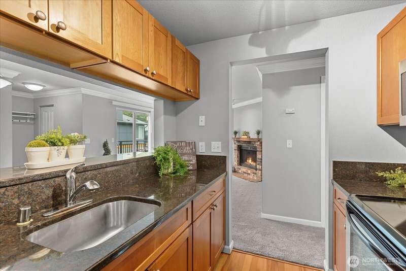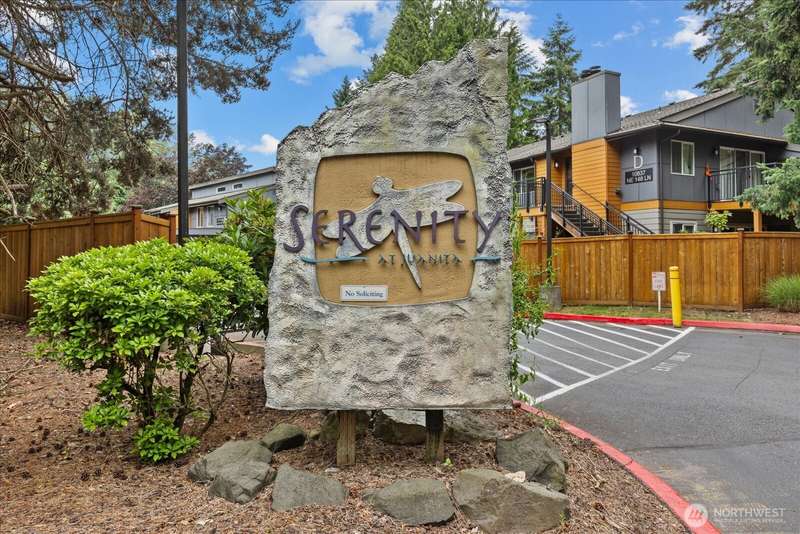 JUANITA: Sought After Gated Community of Serenity With an Outdoor Heated Pool! This Top Floor- Corner Unit Offers Bright and Open Living Space w/ Sliding Glass Door to Your Private Balcony & Storage. Updated Kitchen, Granite Counters & Stainless Appliances. Large Primary Bedroom, Full Bath, Cozy Fireplace, Dining Rm and Breakfast Bar. Full Size W/D Stays. Well-Maintained Community with Outdoor Pool, Park, Sports Court, Playground & Cabana. 1 Covered Carport parking PLUS One Extra Parking Pass for 2 Parking Spaces Total. Close to Bothell, Kirkland, 405, Park & Ride, Juanita Beach Park, Village at Totem-Lake, 20 mins to Microsoft. Nearby Burke-Gilman trail. Exterior Siding/Windows/Decks/Doors Updated. New Roof in 2022. Turn Key! Pet friendly.