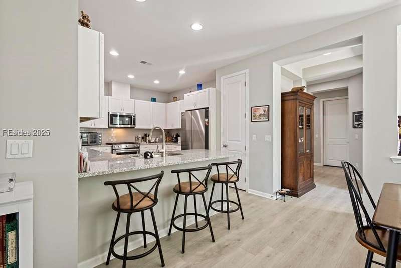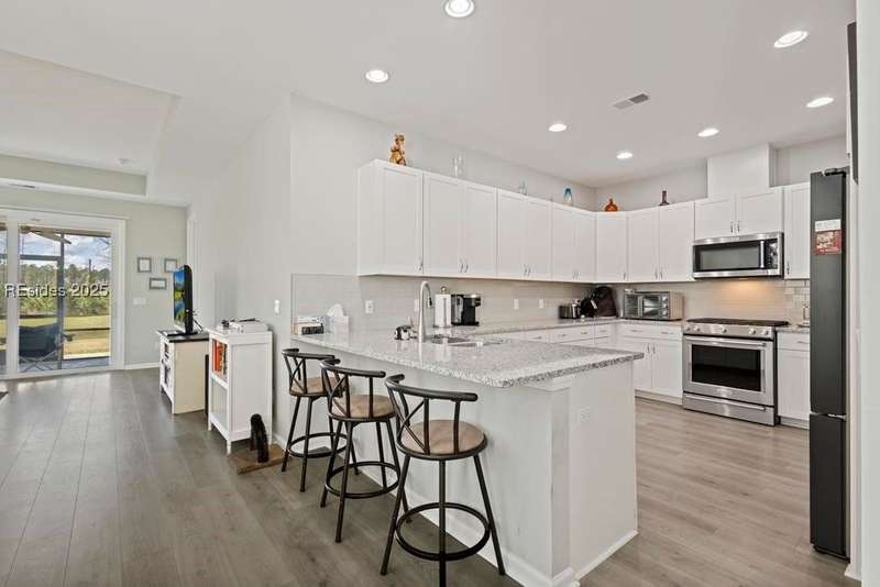 Spectacular view! Fabulous Jamaica villa with a 3.75% ASSUMABLE VA MORTGAGE on a Premier Lot, it doesn't get any better than this, why wait to build! LVP flooring throughout this well-maintained home, w 2 Beds, 2 Baths & a Flex Room/Den/Office. Primary Bed w Lagoon view, Primary Bath w Double Vanity & tiled Shower, good bed separation. Oversized Eat-in Kitchen w tons of cabs (soft close dwrs & doors), Granite Counters, SS Apps, Pantry. Laundry w Whirlpool Washer & Dryer on pedestals. Updated fans & light fixtures, Screened Porch & paver extension. 2 Car Garage w Epoxy floor. Don't wait, Move in ready! See Matterport 3D Video Tour.