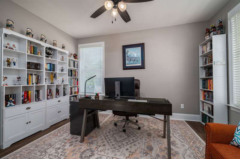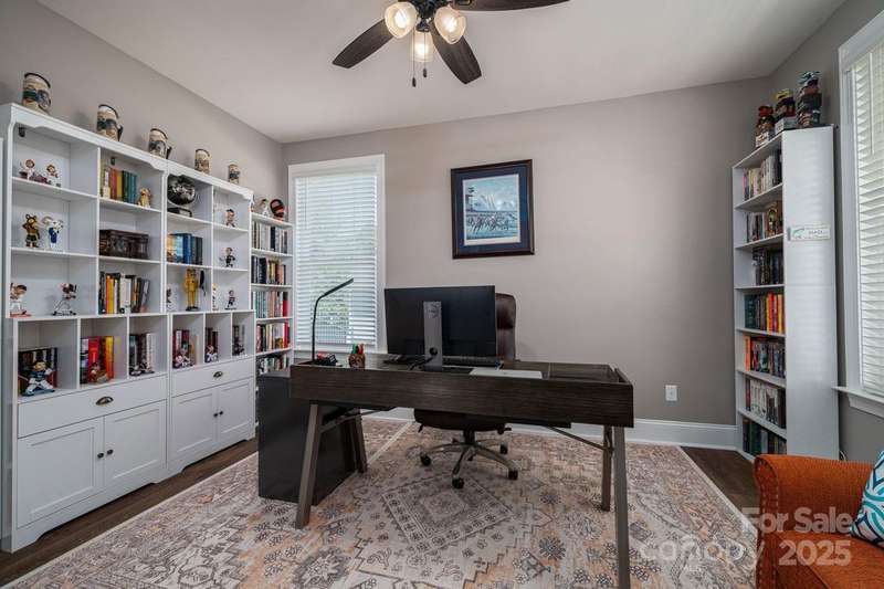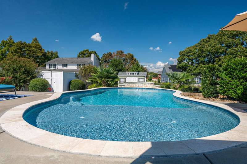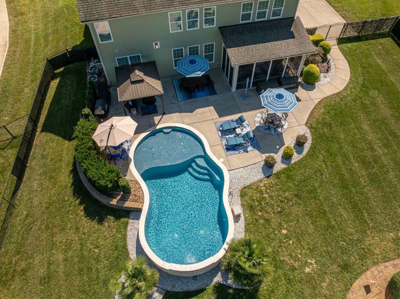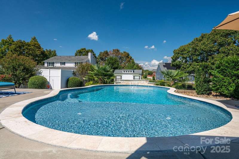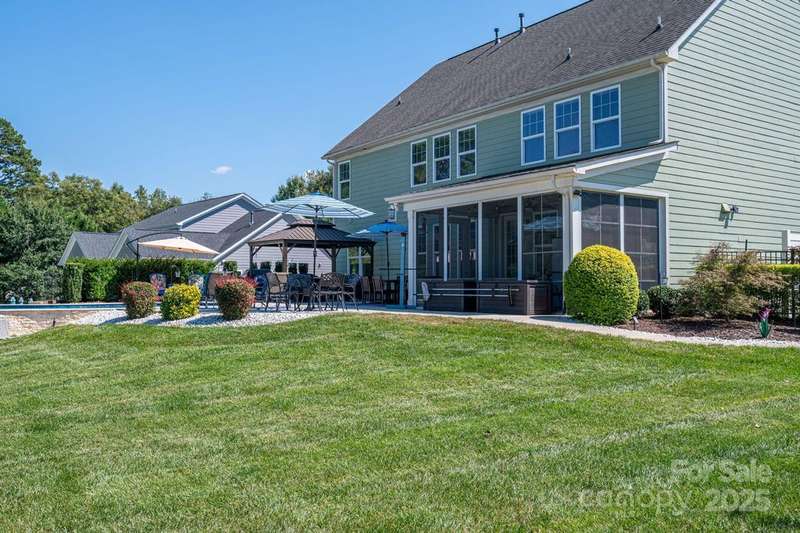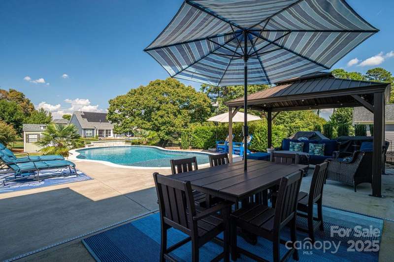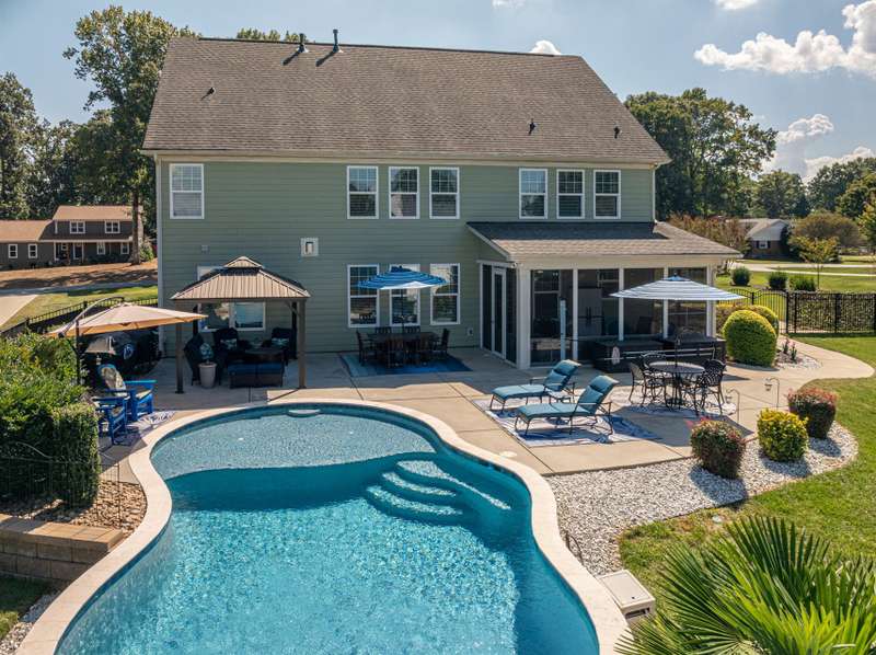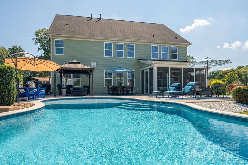 Nestled in one of Gastonia's most sought-after areas, this stunning five-bedroom, four-bathroom estate perfectly balances refined entertaining with relaxed daily living. Designed with elegance, functionality, and comfort in mind, this exceptional home offers the ideal blend of style, space, and serenity. Step inside to discover a thoughtfully designed floor plan, beginning with a formal dining room featuring an attached bar area-perfect for hosting-alongside a private home office enclosed with classic French doors. The space flows effortlessly into a spacious living room highlighted by custom built-in bookcases and a striking stone fireplace. The gourmet kitchen is a chef's dream, boasting premium appliances, an oversized island, and exquisite finishes that elevate everyday cooking and entertaining. A main-floor bedroom with an attached full bath adds convenience and flexibility for guests or multigenerational living. Upstairs, the luxurious master suite offers a spa-like retreat with an oversized shower and a generous walk-in closet. A large bonus room with charming barn-style doors creates the perfect space for a media room, playroom, or additional entertaining area. Step outside to your private backyard oasis-sure to impress even the most discerning buyer. Enjoy a spacious screened porch, a custom patio area, and a stunning inground saltwater pool, all set against the backdrop of an expansive and beautifully landscaped yard. This home is a rare opportunity to experience luxury living in a prime location--don't miss it!