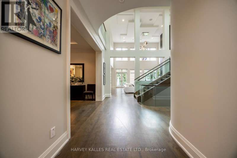 Welcome to Quatorz Sulgrave, a custom luxury home in the prestigious St. Andrews neighbourhood of Toronto. Completed in 2014 by Rostek Homes with classic architecture by David Wooldridge and modern transitional interiors by CMID, this residence offers approximately 7,900 Sq. Ft. of total living space, including ~ 5,000 Sq. Ft. above grade, on a 90' x 125' lot. Designed with timeless elegance, the Indiana limestone façade and professionally landscaped gardens set the stage for refined living. Inside, 10' ceilings, oak hardwood floors, Savaria elevator, applied mouldings, and custom millwork showcase exceptional craftsmanship. The main floor blends formal and family living with a living/dining room, study, and an open-concept chefs kitchen featuring Sub-Zero/Wolf appliances, quartz waterfall island, butlers pantry, and breakfast area overlooking the two-storey family room with soaring 20' ceiling and linear fireplace. The upper level offers 4 vaulted bedrooms with ensuites, including a serene primary retreat with fireplace, dressing room, and 7-piece spa-inspired ensuite. The finished lower level includes a recreation room, games room, wet bar, fifth bedroom/gym, cedar closet, arcade, and cold cellars. Outdoor living is enhanced with stone interlock, outdoor kitchen/wet bar, fenced yard, and standby generator. Additional features: 4-car built-in garage with EV charger, 6-car drive, smart home wiring, built-in speakers, alarm and camera system, and dual furnaces & A/C. Ideally located near Bayview Village, The Granite Club, Highway 401, and some of Toronto's top private and public schools. A rare opportunity to own a custom-built St. Andrews luxury home of enduring style, exceptional quality, and unparalleled convenience. (id:6370)