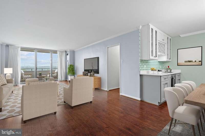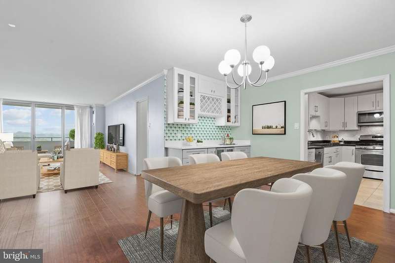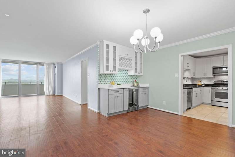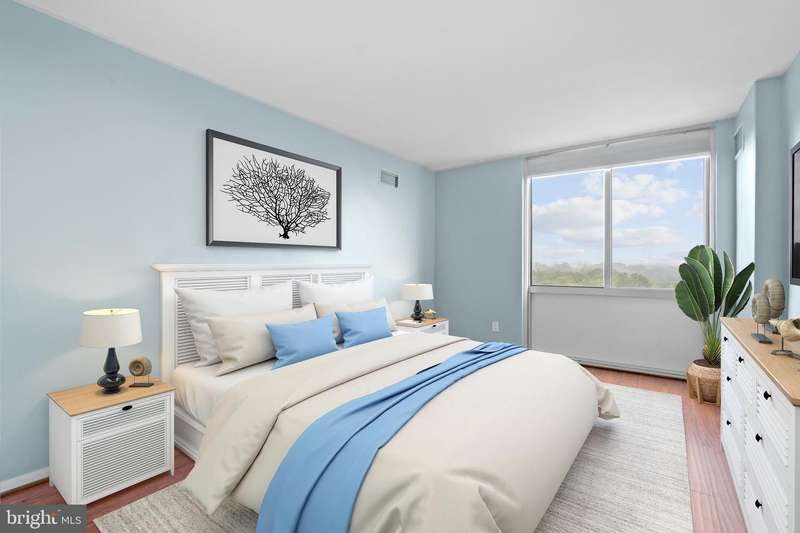 Welcome to 5101 River Road, Unit 1504 - a beautifully updated 2-bedroom, 2-bath condominium offering comfort, style, and convenience in one of the area's most desirable full-service buildings. Perched on a high floor, this spacious home features an open layout with abundant natural light and sweeping views. Large living area opens to a balcony with treetop views with premium southern exposure views. The generously sized dining area includes a custom built-in bar with wine refrigerator, ideal for hosting and effortless entertaining. The updated kitchen has sleek cabinetry, stainless steel appliances, and stone countertops, perfect for everyday living and entertaining. Both bathrooms have been thoughtfully renovated with modern finishes and fixtures. Retreat to two well-proportioned bedrooms, including a primary suite with ample closet space and a private en-suite bath. Matching LVP flooring throughout the unit. One garage parking space is deeded with the unit. Separate storage space comes with the unit. Enjoy the luxury lifestyle of this amenity-rich building, which includes a 24-hour concierge, heated swimming pool, fitness center, large outdoor common space, party room, and more. Pet Free/Smoke Free building. Minutes from Kenwood Station shopping (Whole Foods, restaurants) and Westbard Square with dining, services, and a new Giant grocery store.1 mile to Friendship Height, the Metro and additional shopping and dining options. Adjacent to the Capital Crescent trail, a favorite for walking and biking enthusiasts. Don't miss this opportunity to own a turnkey home in an unbeatable location!
