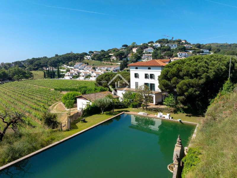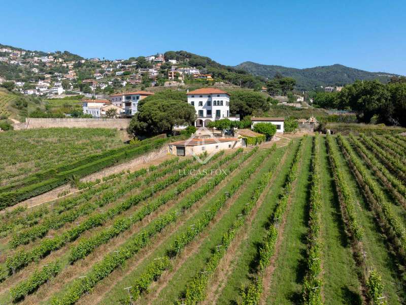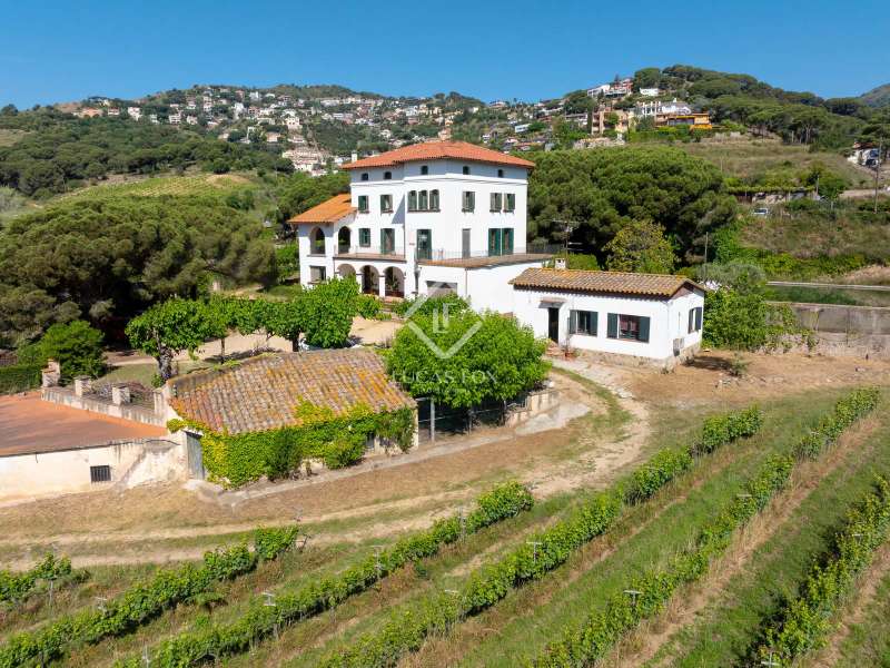 Lucas Fox presents Can Sans, an exceptional and emblematic historic country house located in the very heart of Alella, one of the most sought-after villages on the Maresme coast. Surrounded by 27,000 m² of private vineyards, this majestic estate enjoys breathtaking panoramic views of the sea, the surrounding hills and the beautiful Mediterranean landscape. The property is composed of three separate buildings: - The main house, spread over three floors plus a spacious attic, offers 10 bedrooms and 3 bathrooms, several terraces (including one covered, ideal for year-round enjoyment), and a wealth of original architectural details with remarkable potential for modernisation. - An independent caretaker’s house, perfect for guest accommodation or staff quarters. - An agricultural warehouse, currently used for machinery, with the possibility to convert into a garage or additional living space. Structurally sound, the masia retains its historical character and charm, although renovation of systems and windows is required to bring it up to contemporary living standards. The outdoor spaces offer a truly privileged lifestyle, with a traditional water reservoir repurposed as a pool, extensive Mediterranean gardens, and the serenity of a private vineyard estate, all just minutes from the centre of Alella and only 20 minutes from Barcelona. This is a unique opportunity to create a magnificent private residence, a boutique wine project, or a charming rural retreat in one of Catalonia’s most prestigious wine-growing regions. A rare gem blending history, nature and the Mediterranean lifestyle.